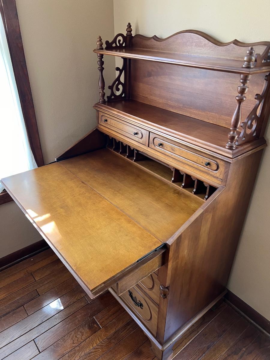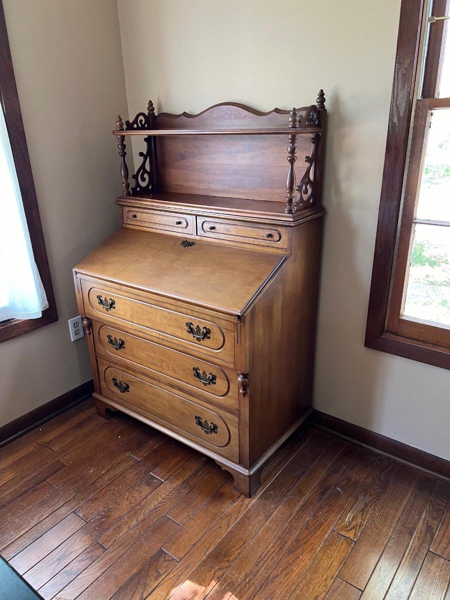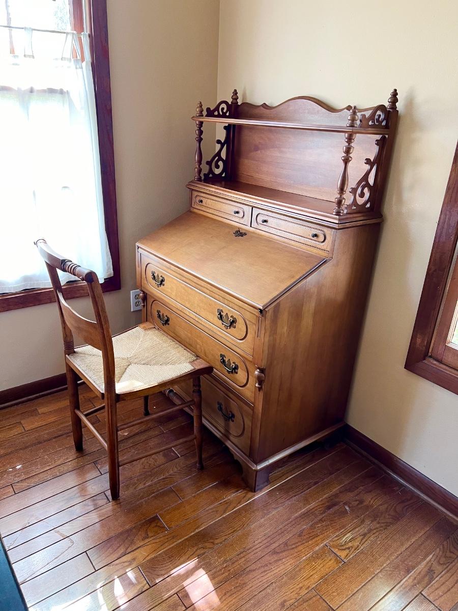 2 Piece Solid Maple Secretary Desk & Rush Chair