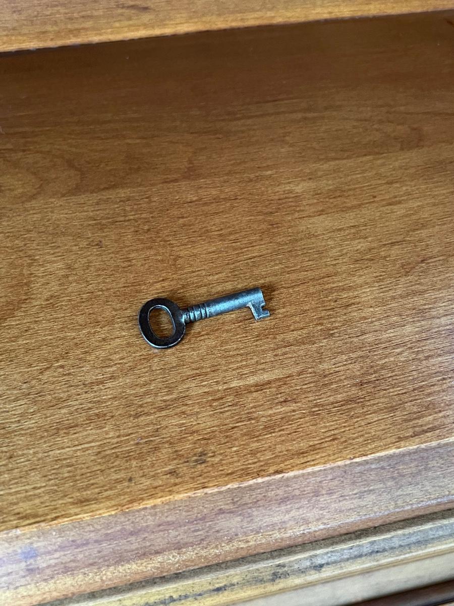 All drawers slide easy ~ Has key, does lock ~ Entire desk = 55” H x 36” W x 21” D ~ Desk without topper = 35.5” H ~ Chair = 35” H x 18” W x 19” D