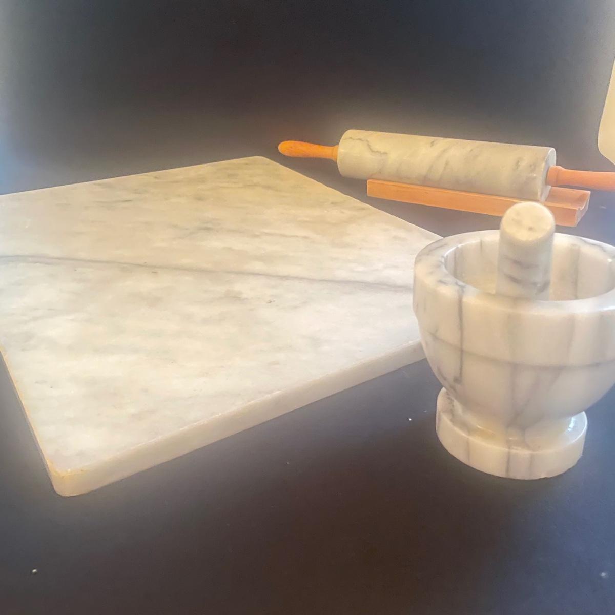 Solid Marble Cutting Board, Mortar/Pestle, & Rolling Pin w/Stand (MC-RG)