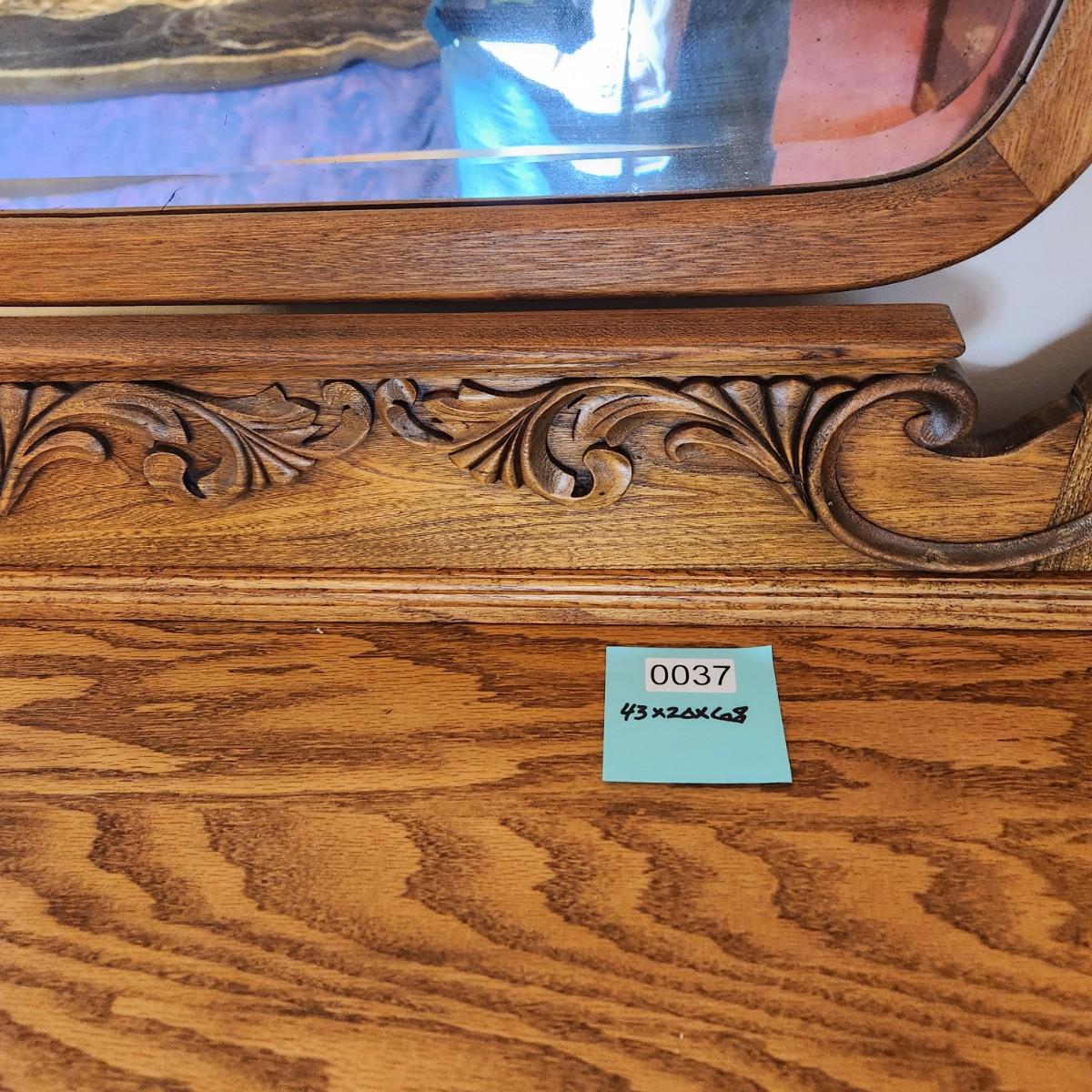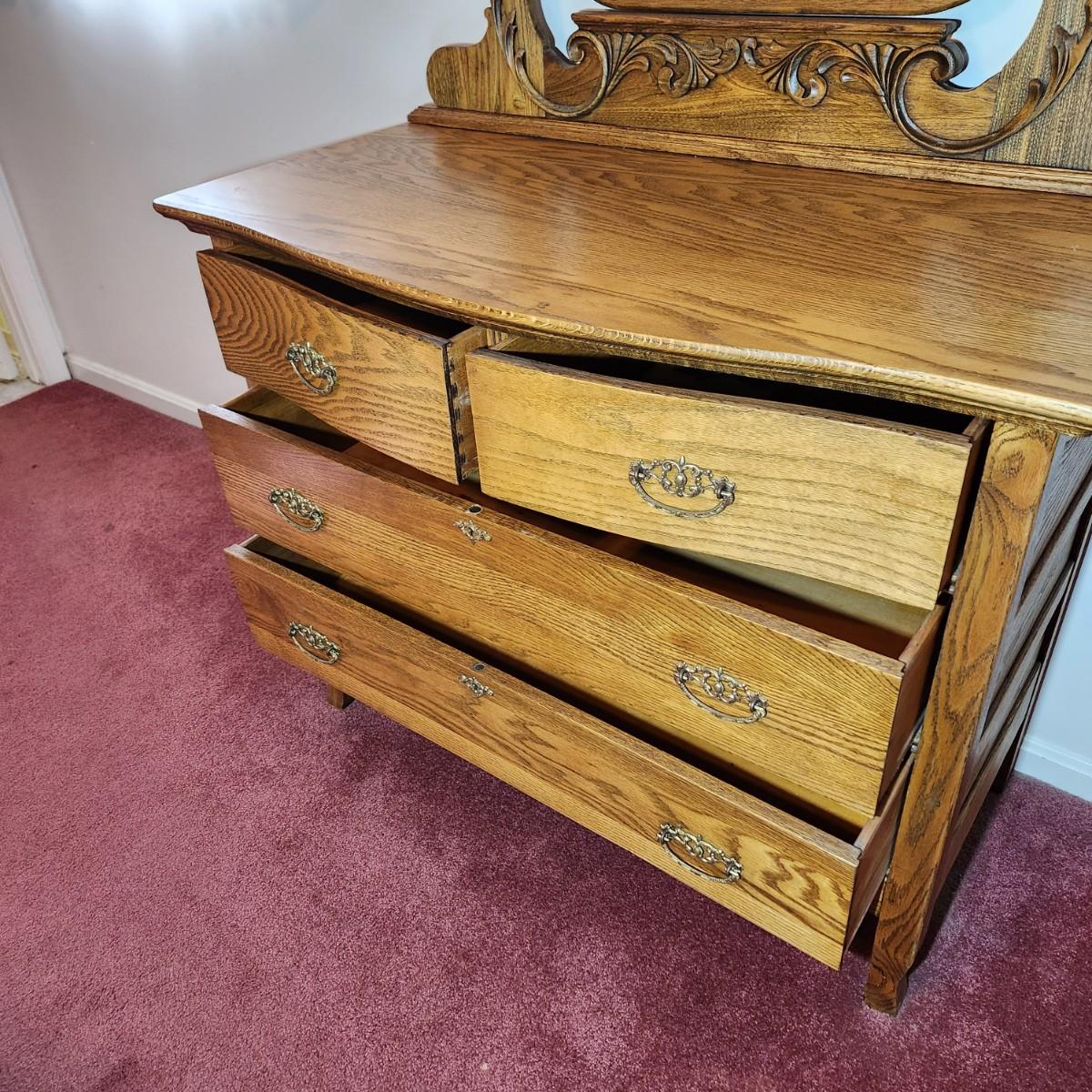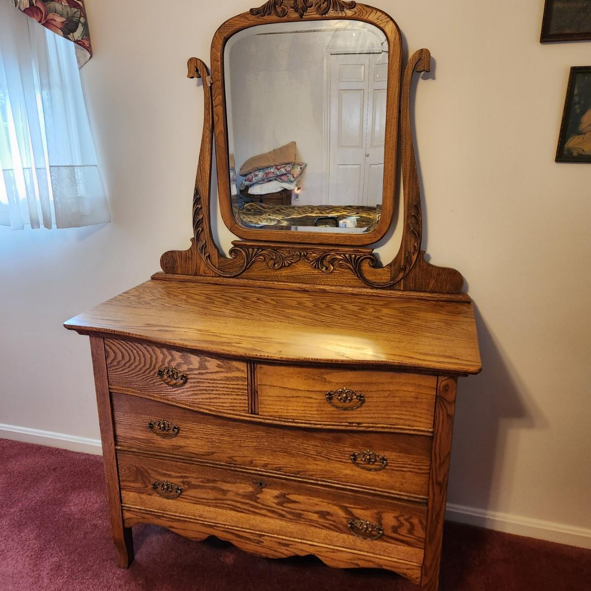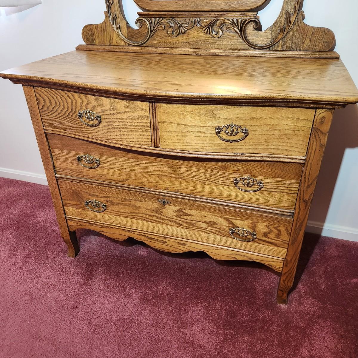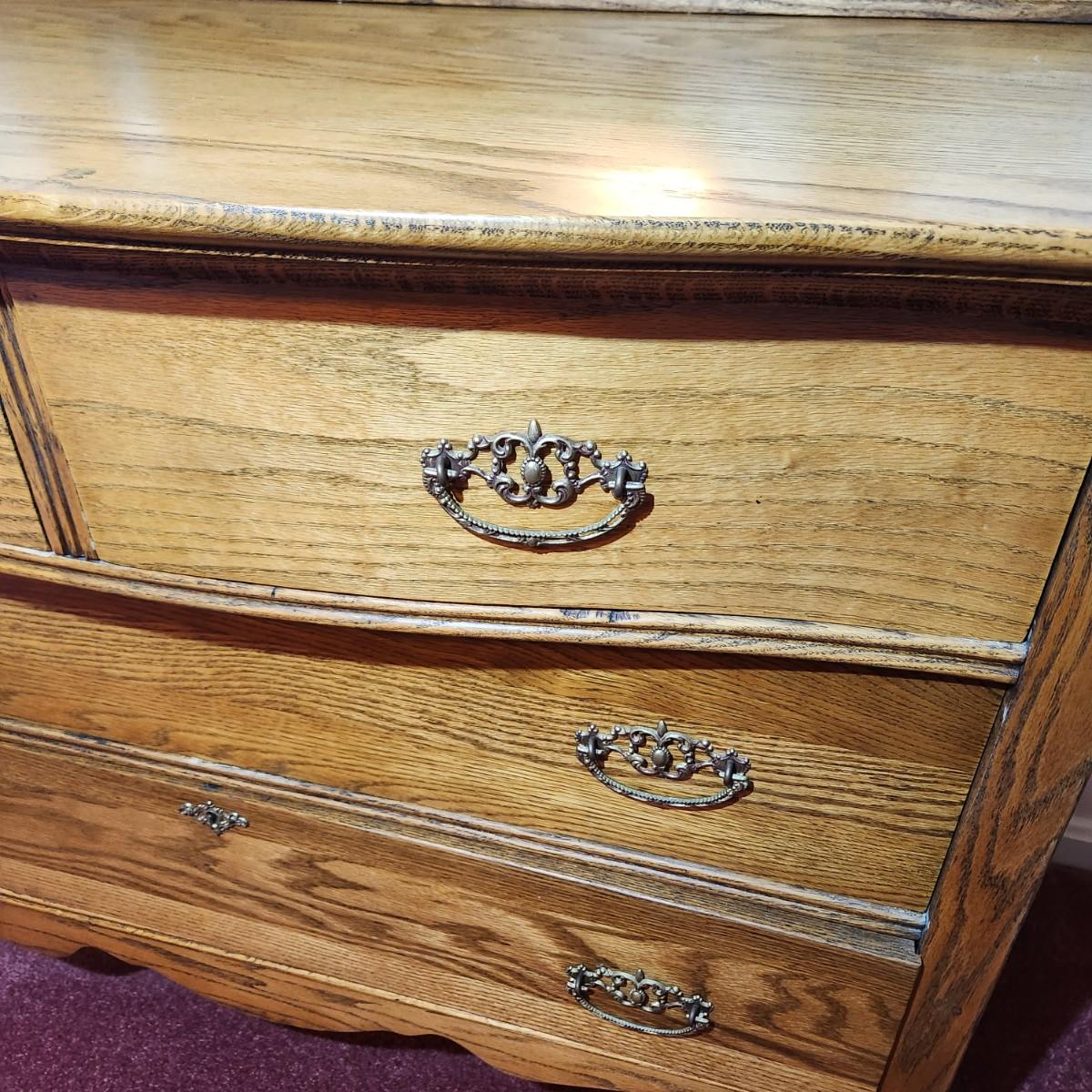 Solid Oak 2 over 2 Drawer Chest Dresser w Beveled Mirror 43x20x68