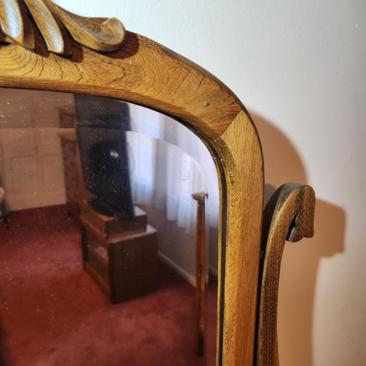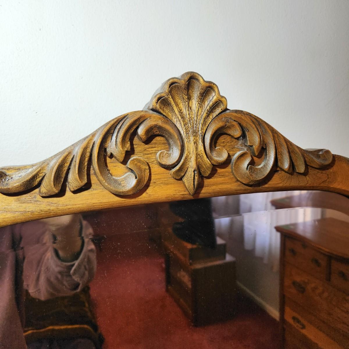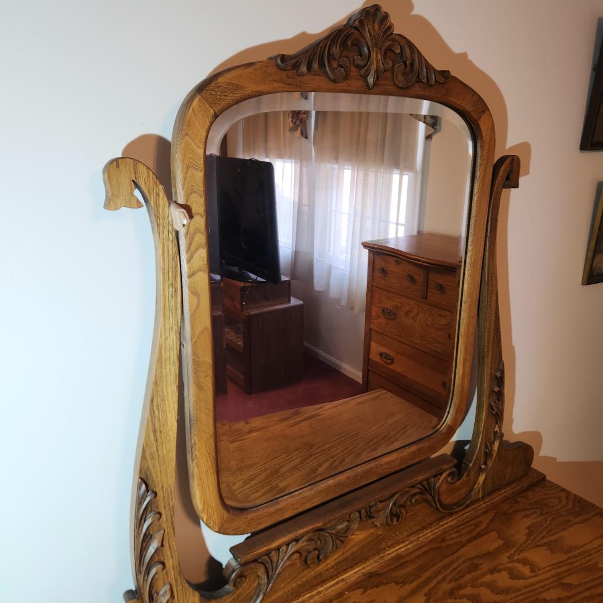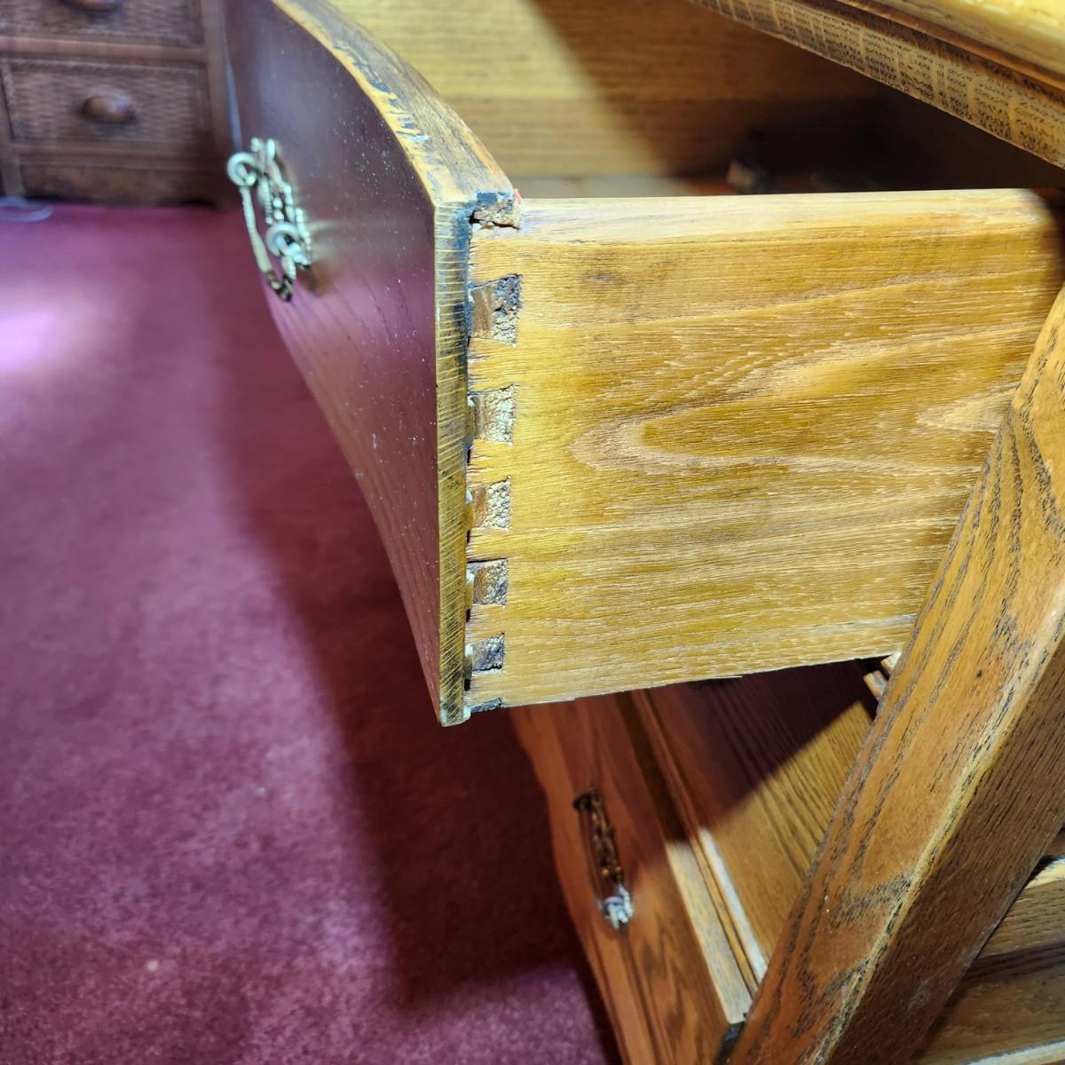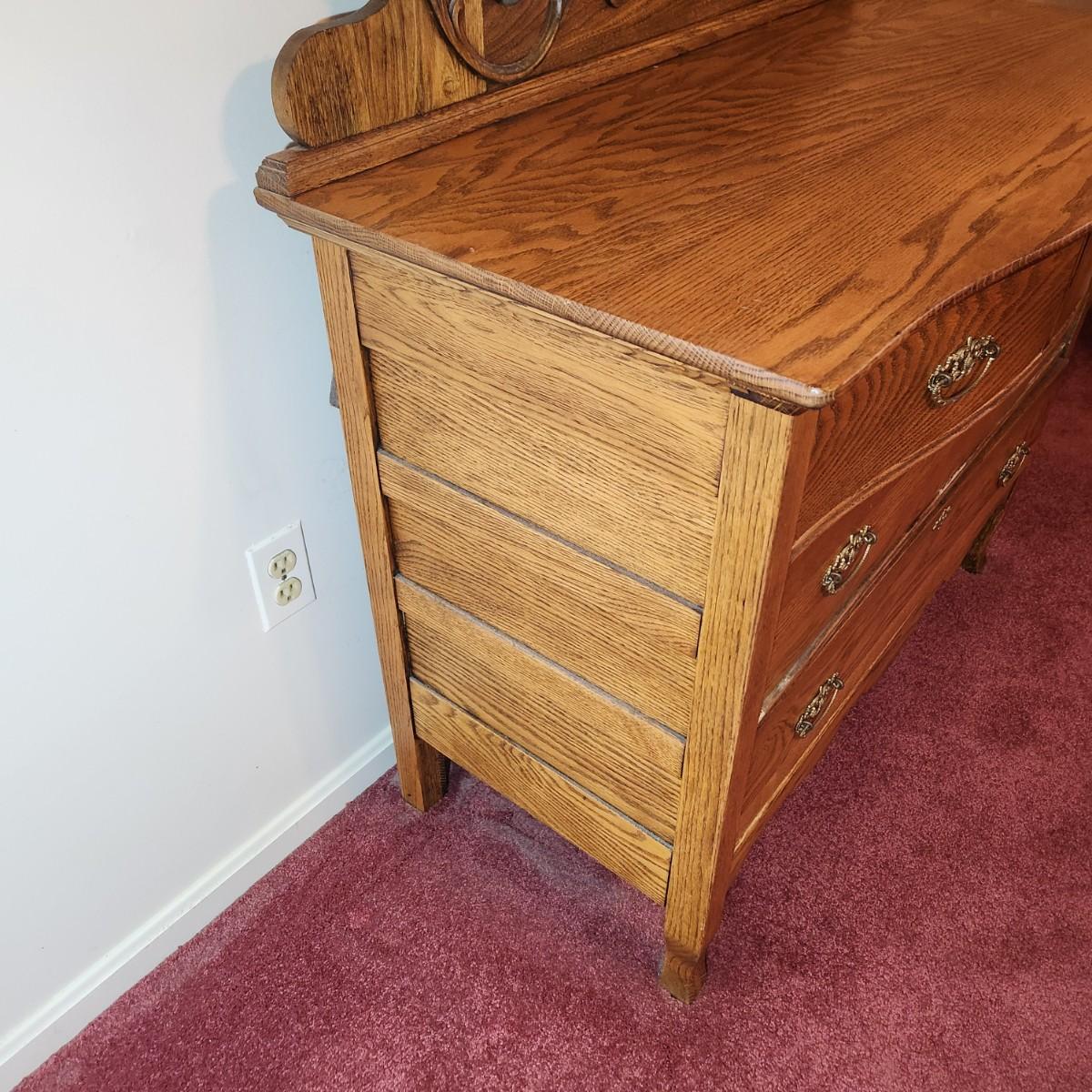 Solid Oak 2 over 2 Drawer Chest Dresser w Beveled Mirror 43x20x68