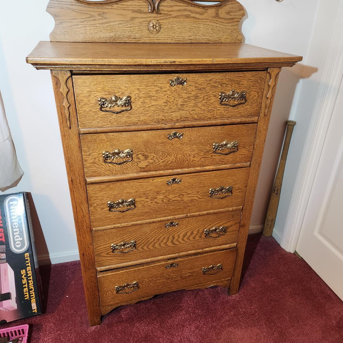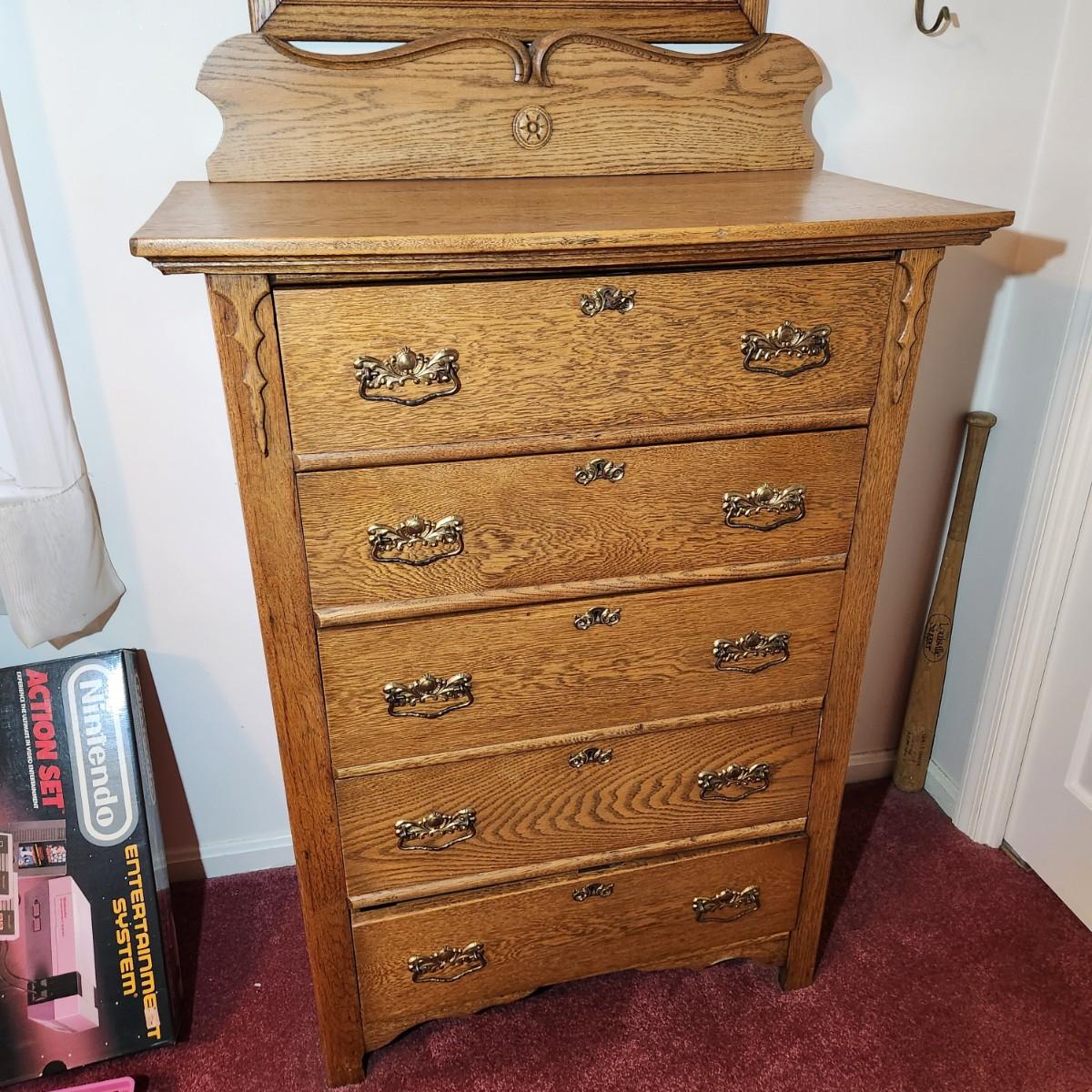 Solid Oak 5 Drawer Chest Dresser 33x17x52