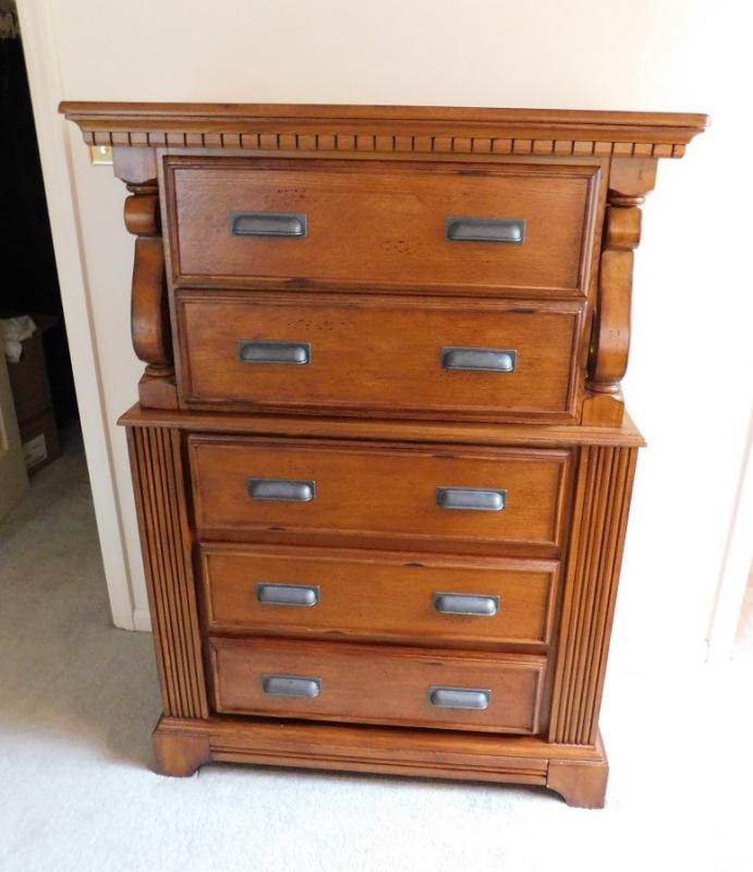 Solid Oak 5 Drawer Contemporary Dresser 51" x 36" in like new condition
