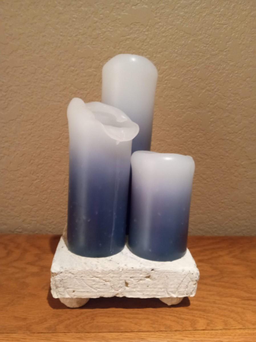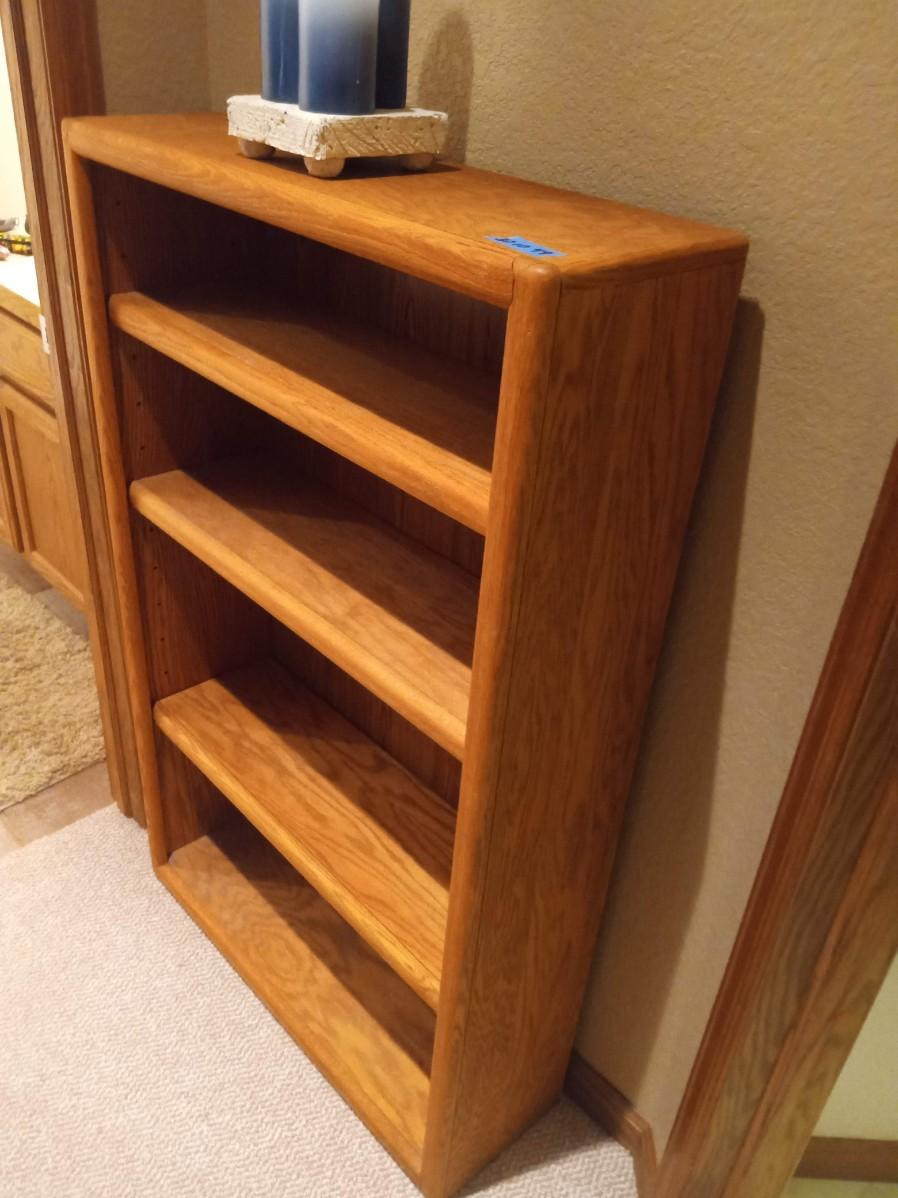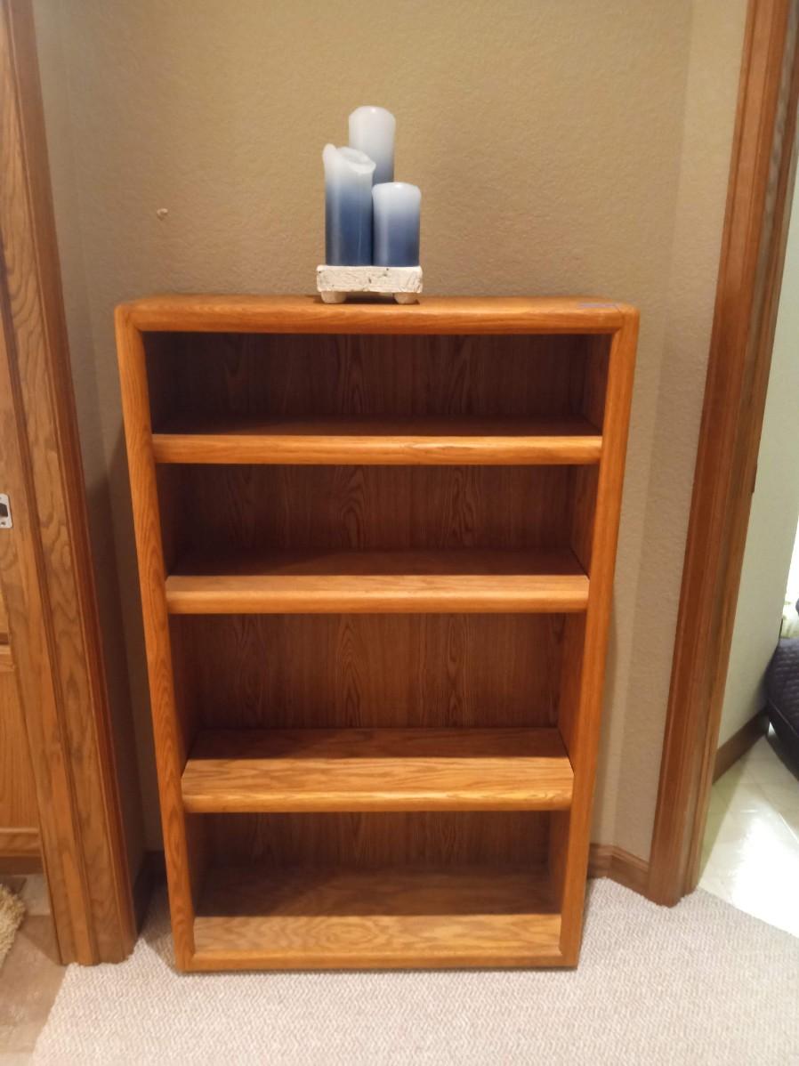 SOLID OAK BOOKCASE AND 3 CANDLES ON A BASE