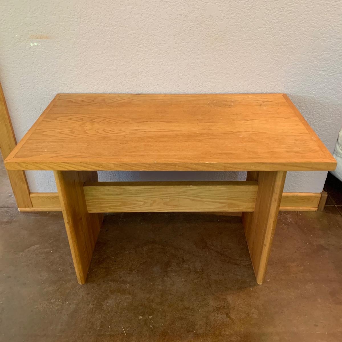 Solid Oak Desk measuring 42” x 24” x 27”H. Desk has minor blemishes, please see photos for more details. Local pickup only. Item is heavy, please bring assistance to load.