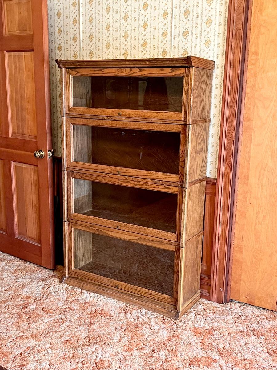 Solid Oak Four (4) Shelf Barrister Bookcase