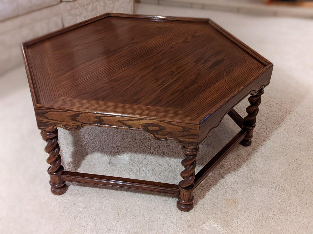 Solid Oak Hexagon Coffee Table, Exc Condition