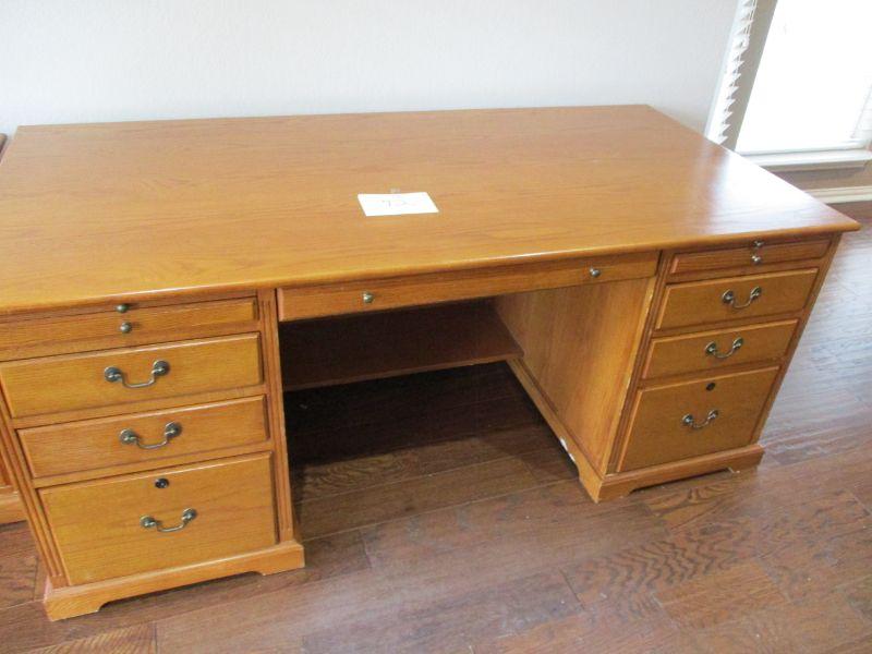 Oak office desk. Great condition. 72x76. Depth 31in.