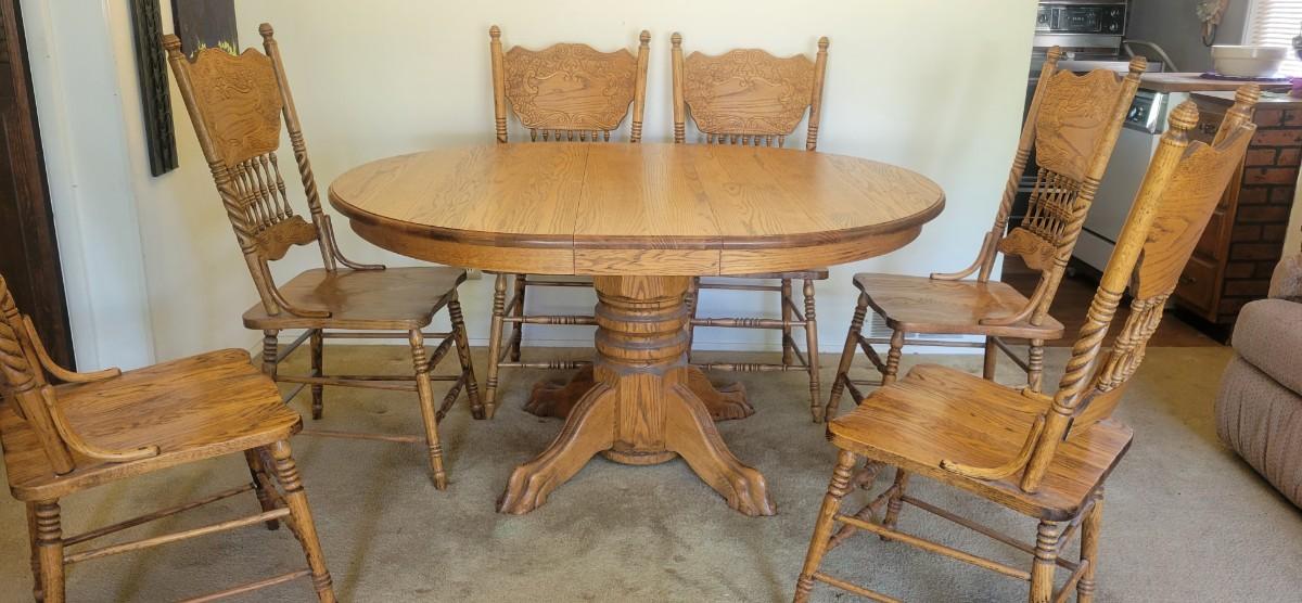 Light spot approximately the size of a quarter that is lightly stained. Chairs are solidly constructed.