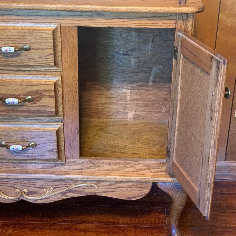 Server has Queen Anne legs With 3 drawers and 2 side cabinets
