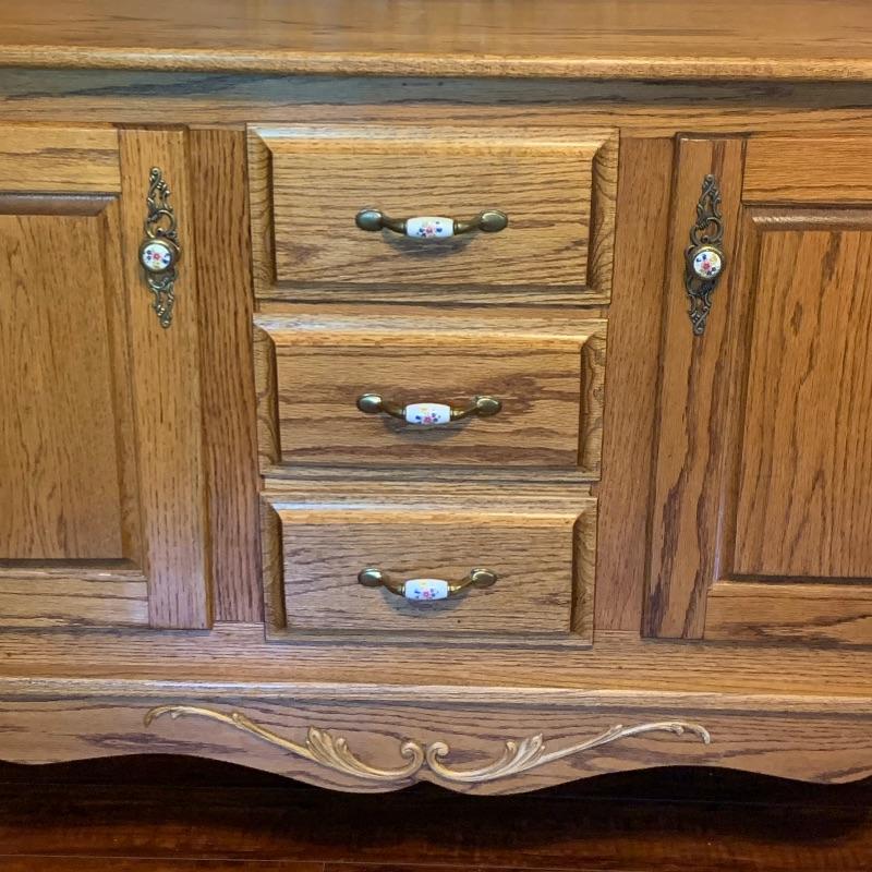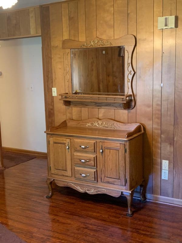 Solid Oak Adorable Country Server with Matching Mirror