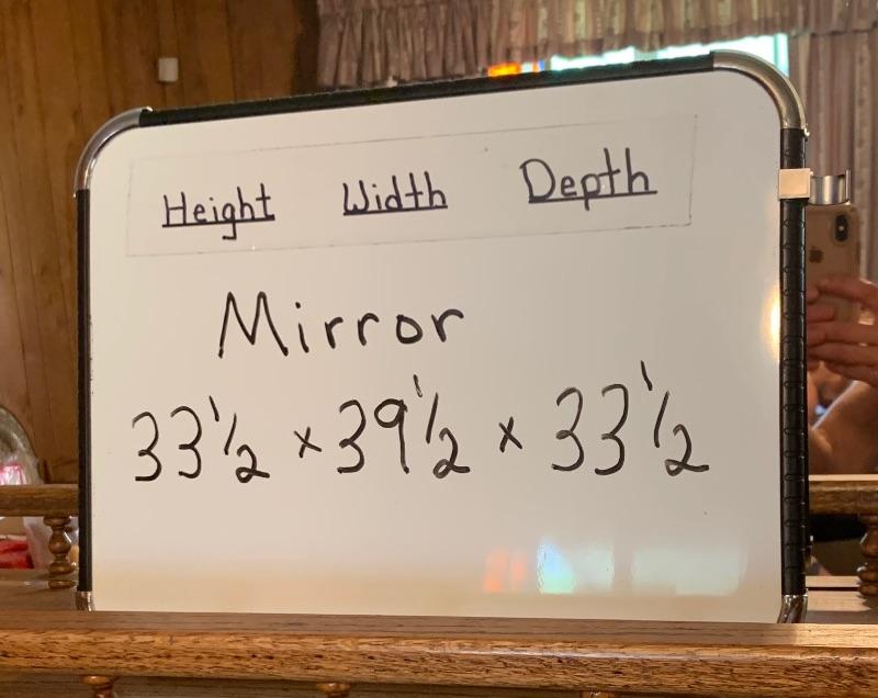 Mirror has wooden gallery