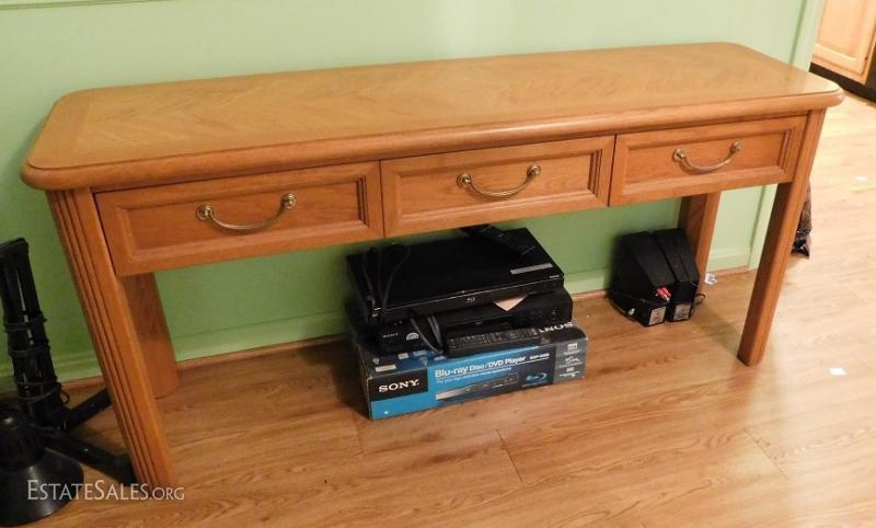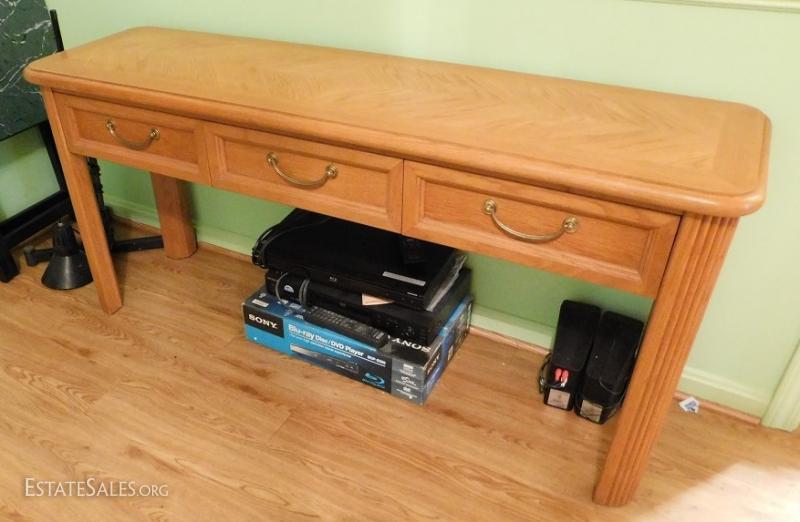 Solid oak sofa table with three drawers. Very good condition