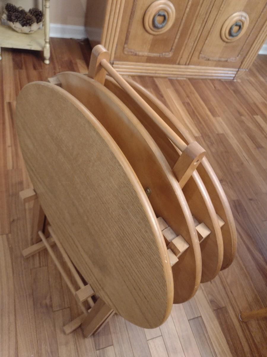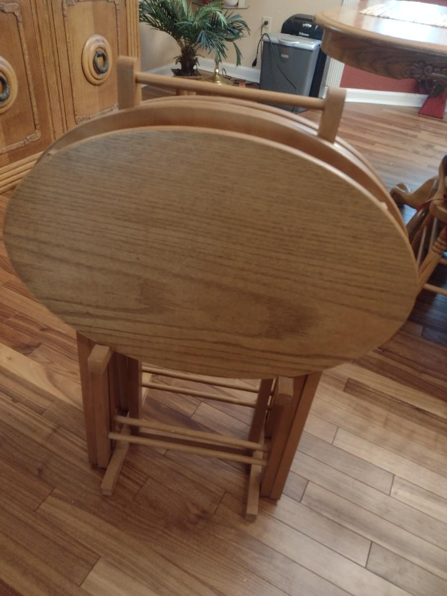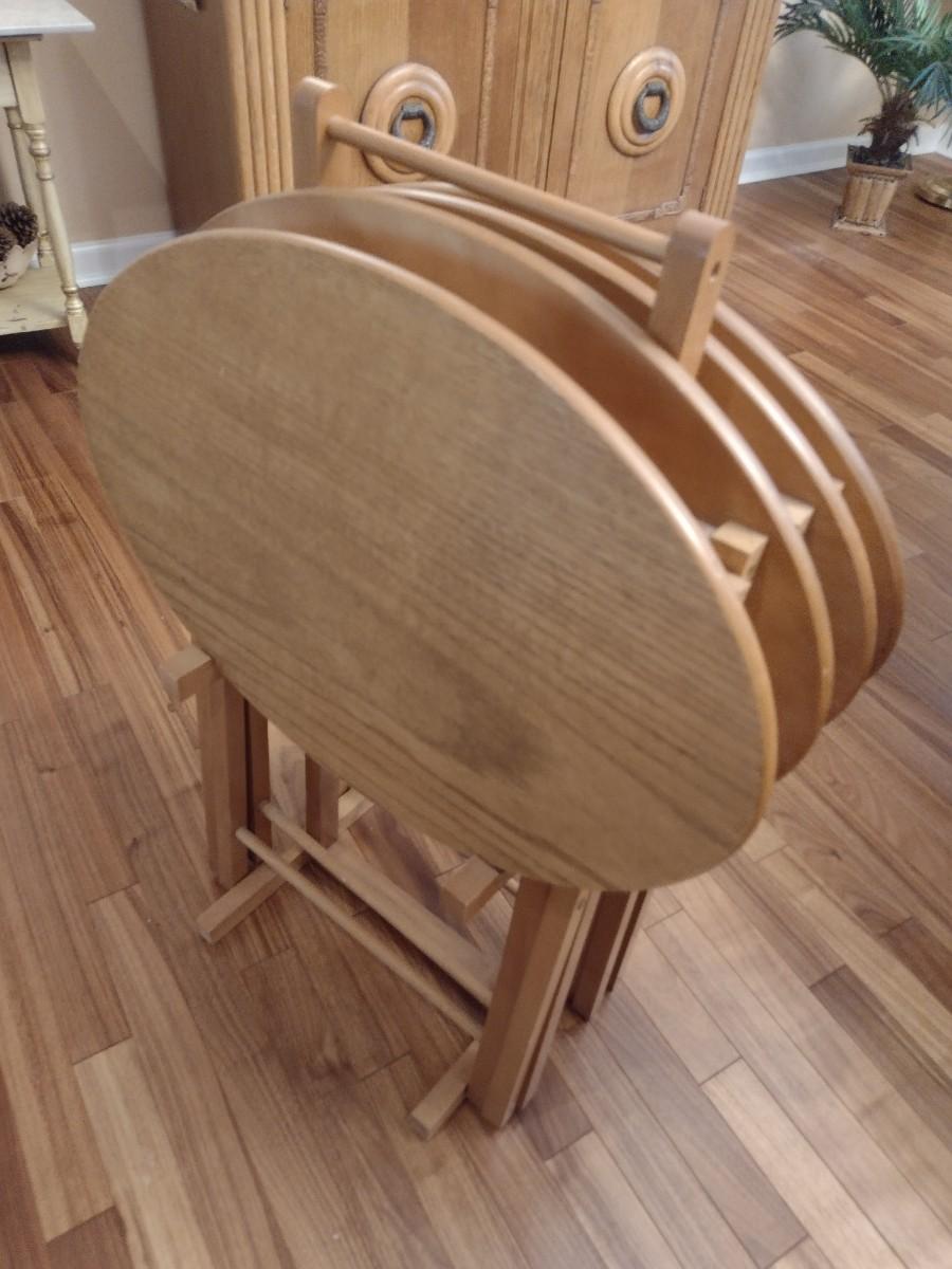 Solid Oak TV Tray Four Piece Set with Stand