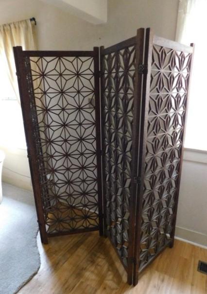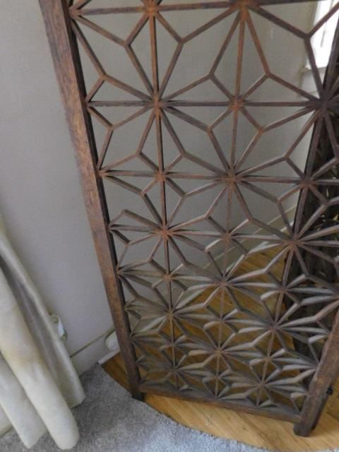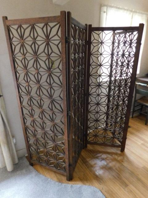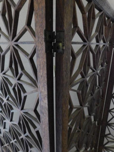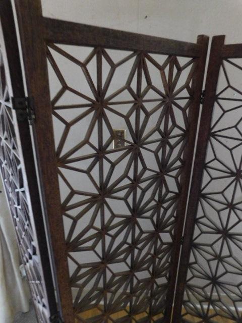 Solid Oak Wood Four Panel Screen Divider 96" x 69" noticed one fret piece missing as shown.