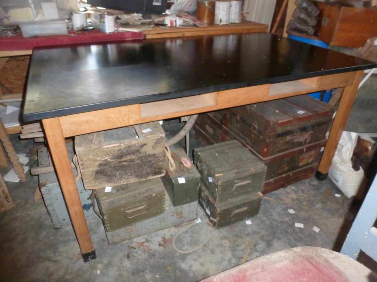 Phenolic Resin Chemistry Wood Frame Industrial Table- Approx 42" x 72" x 36 1/2" Tall (Choice A)