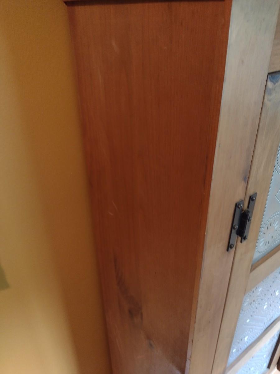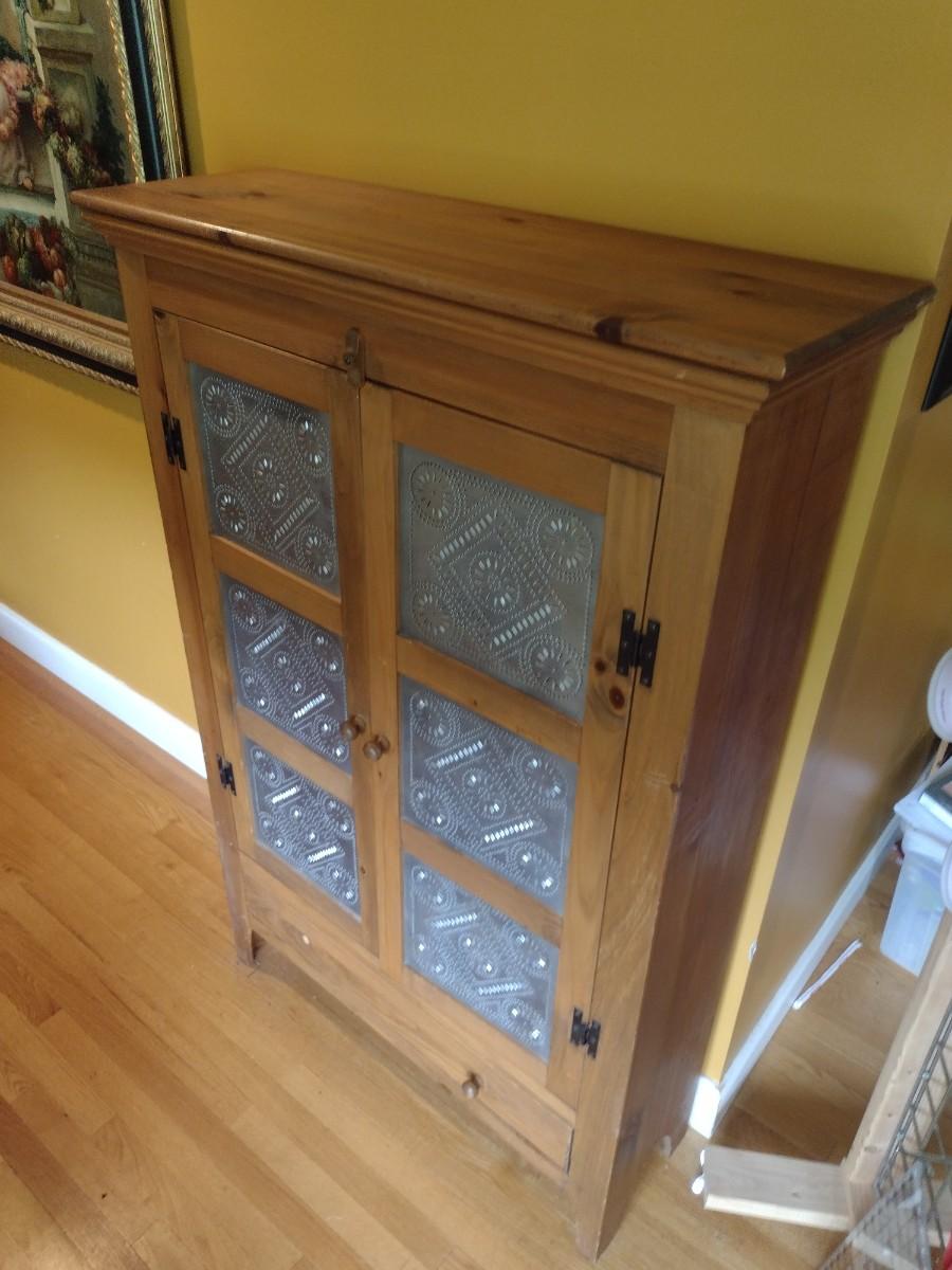 Solid Pine Double Door Pie Safe or Jelly Cabinet with Punched Tin Accent Panels (No Contents)