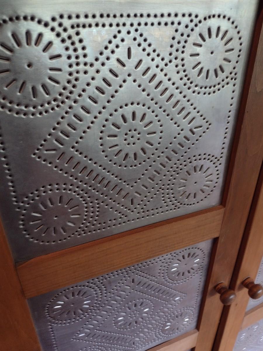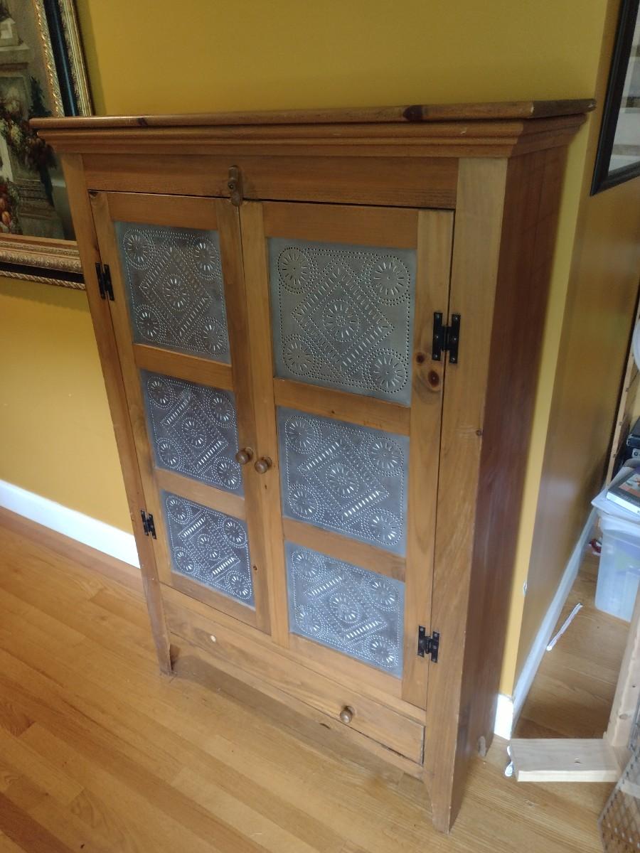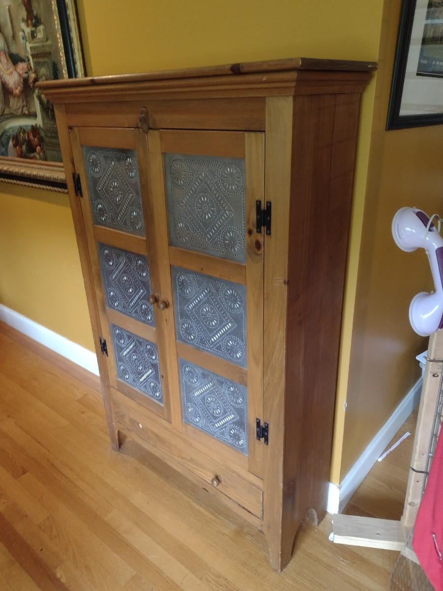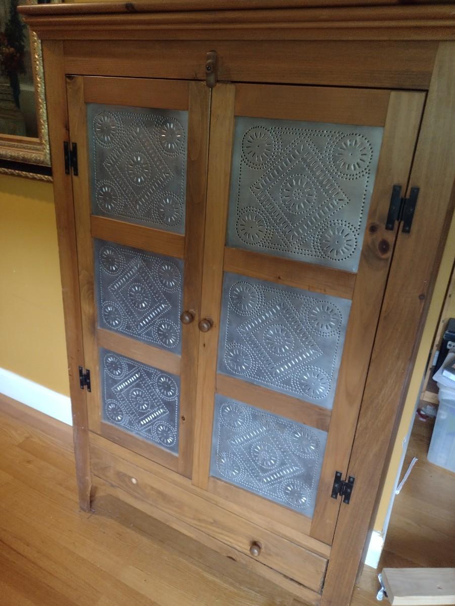 Solid Pine Double Door Pie Safe or Jelly Cabinet with Punched Tin Accent Panels