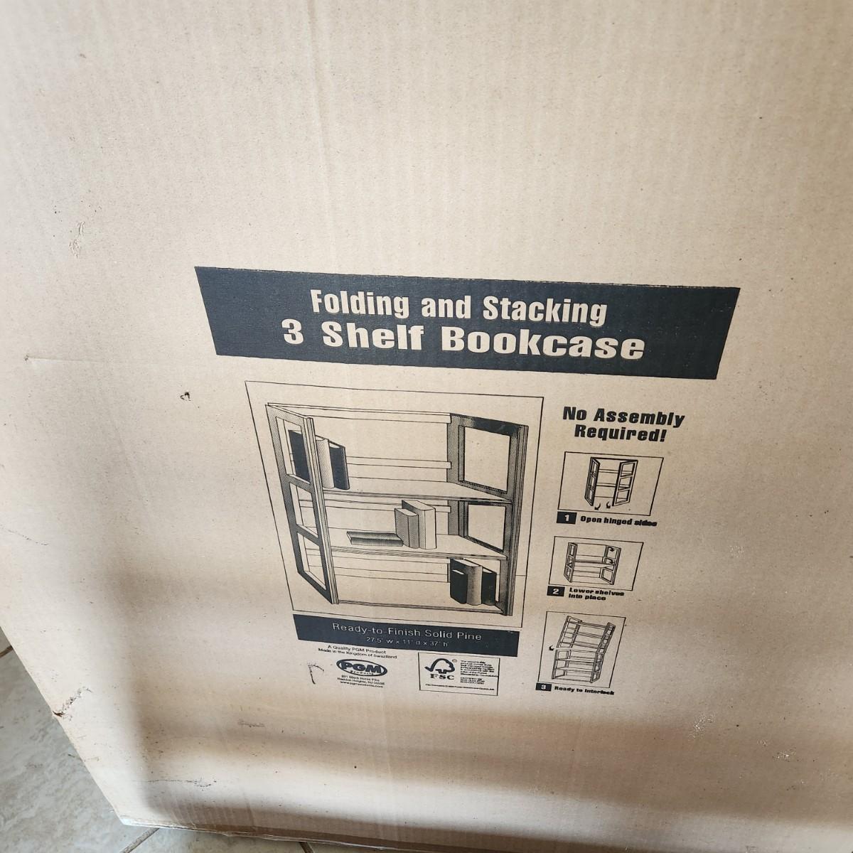 Solid Pine Instant Folding & Stacking 3 Shelves Unit in box 27"x11.25'Dx37.5"H 2 or 3