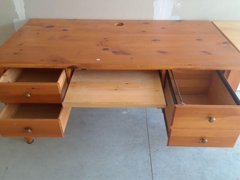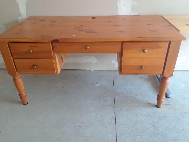 SOLID PINE WOOD DESK MEASURES 5' X 3' CENTER DRAWER IS FOR KEYBOARD