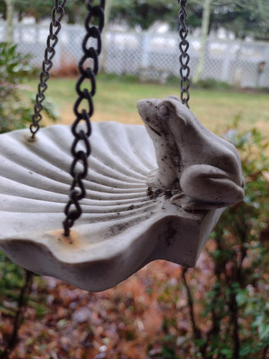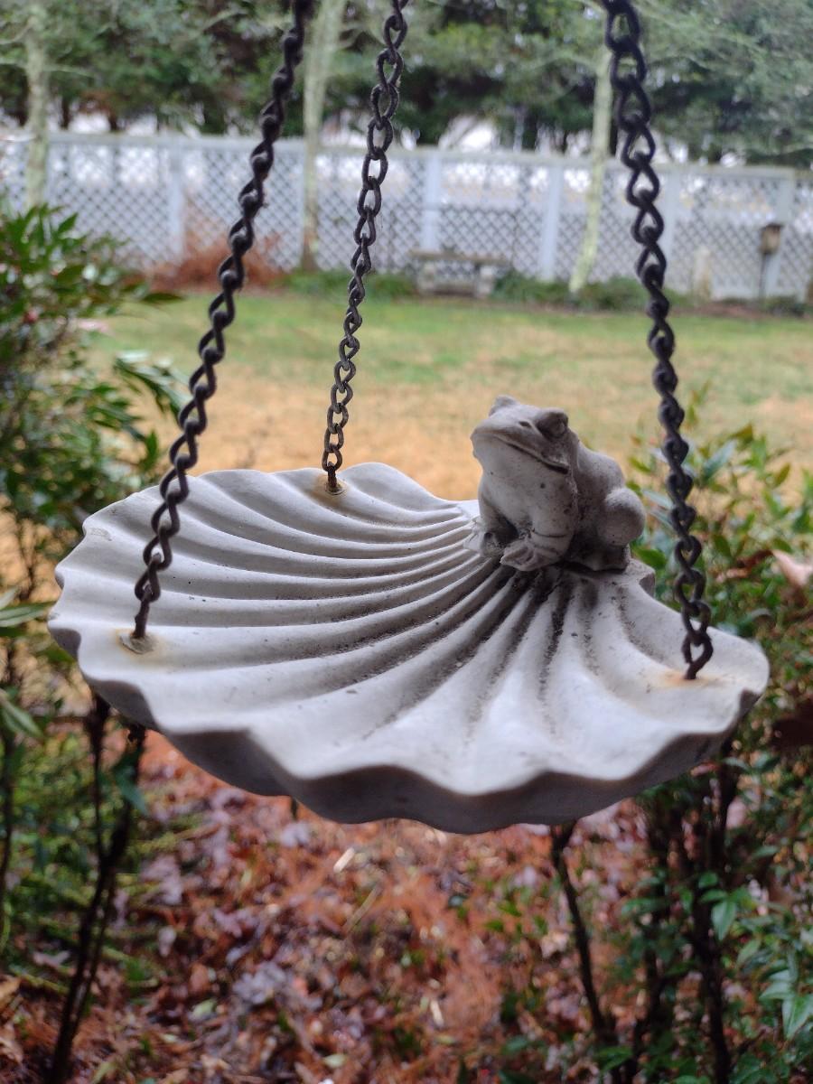 Solid Resin Frog on Shell Bird Feeder