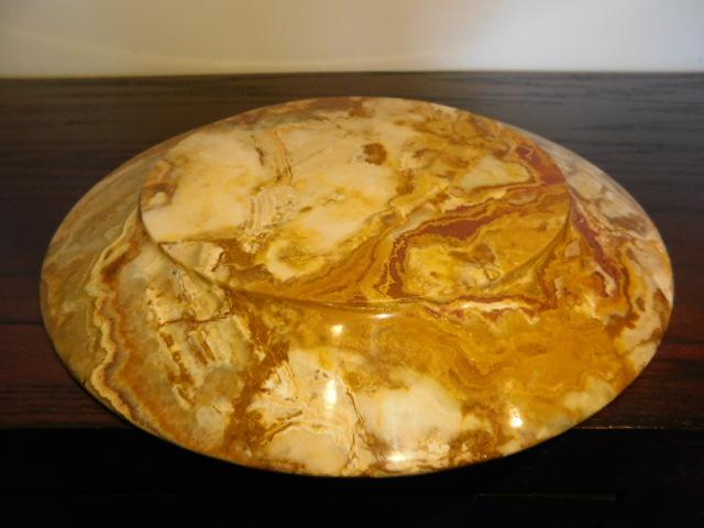 Solid Round Cut Marble Shallow Large Centerpiece Bowl 13" dia. This bowl is heavy and flawless in appearance. Nice item in excellent condition