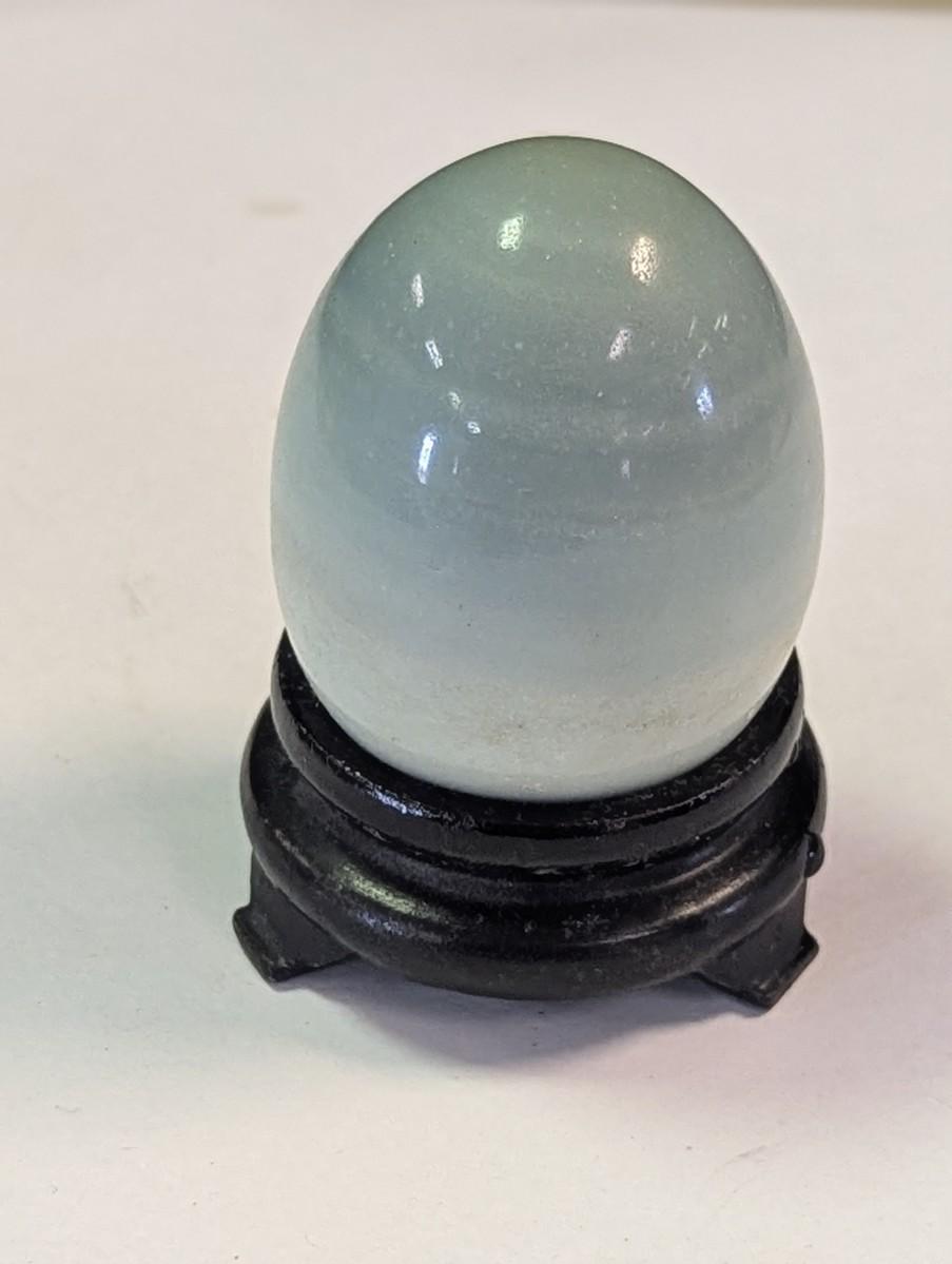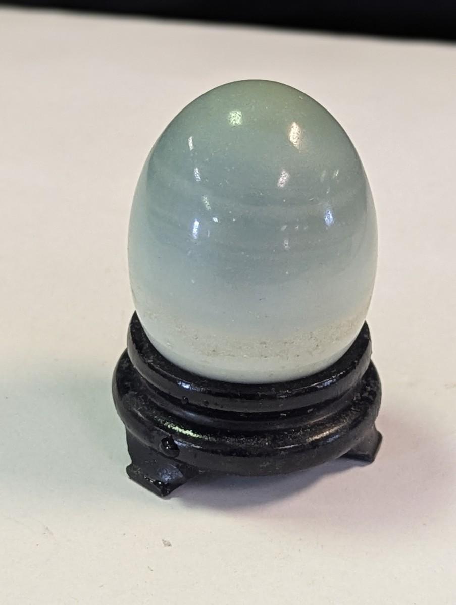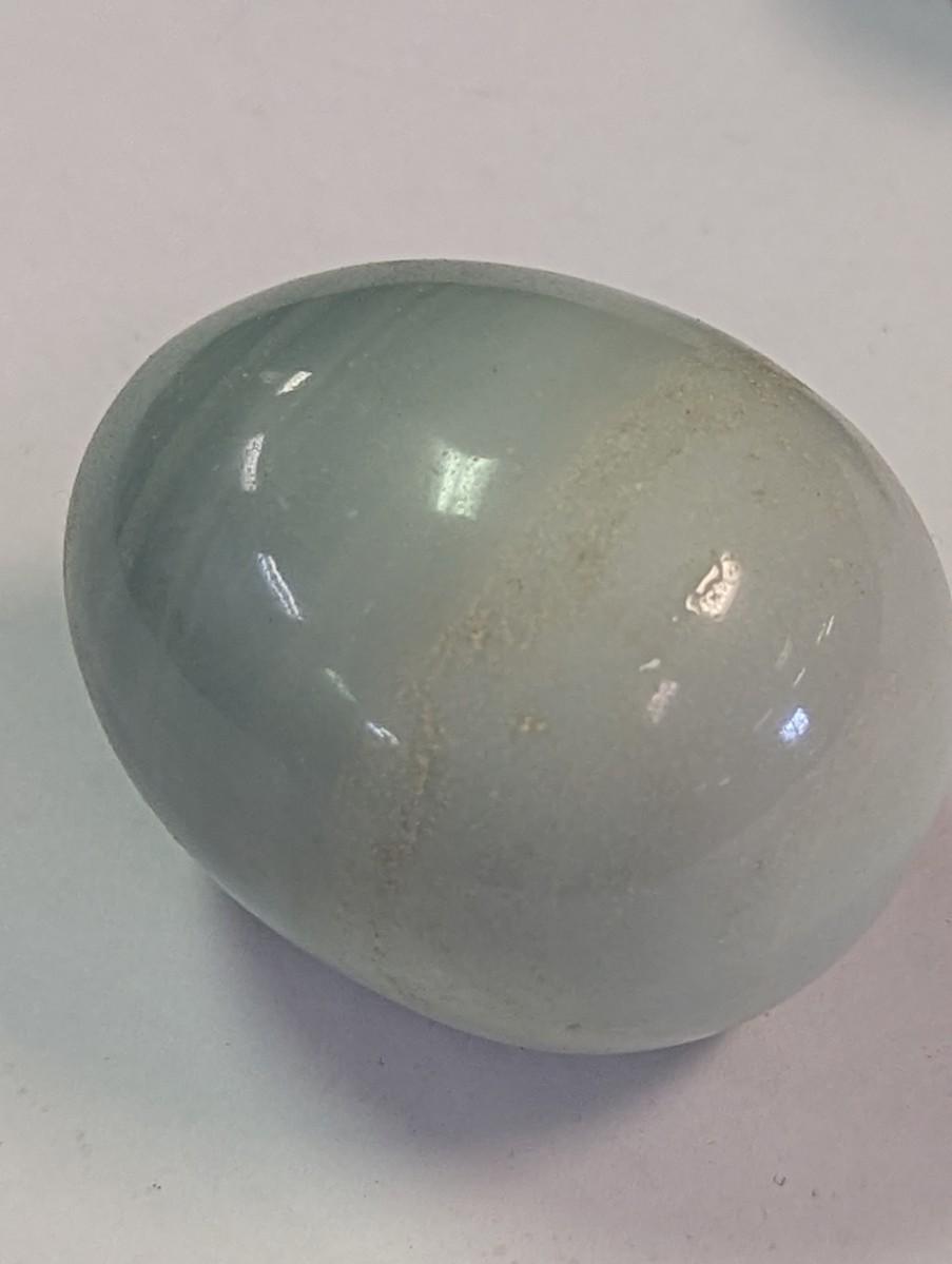 Solid Stone Carved Vintage Alabaster Cream & Light Blue Egg #4