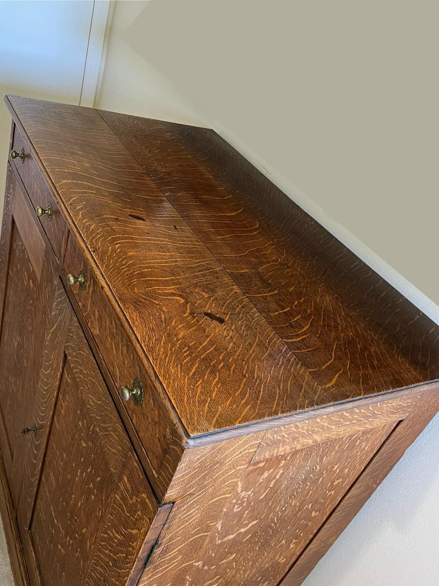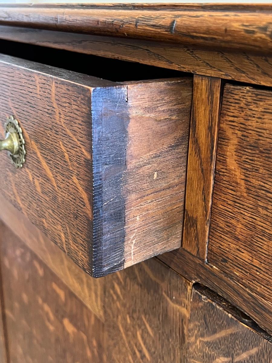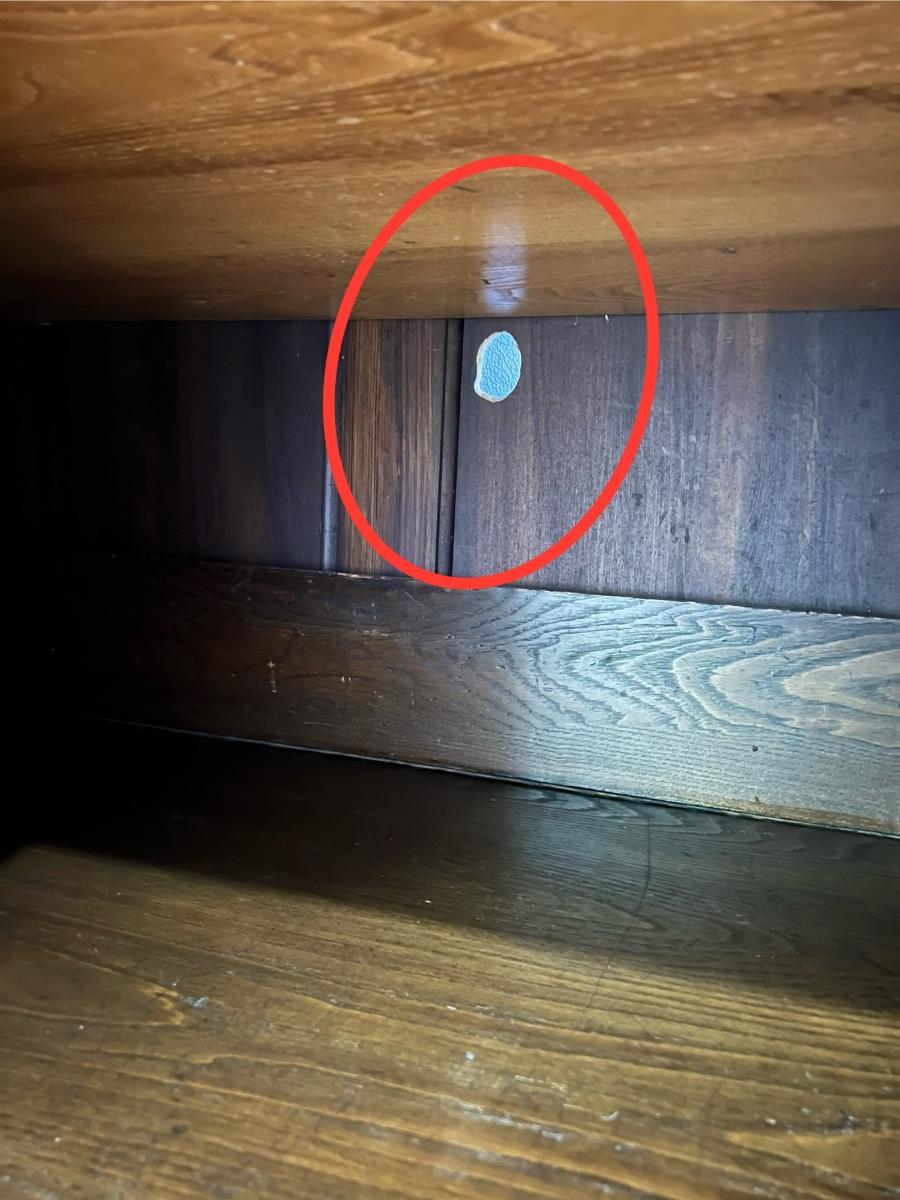 3 shelving units in the cabinet slide out, height can not be adjusted ~ Drawers slide easy ~ No brand ~ Has key, but does not lock ~ Has 2” hole cut in the back, see photos ~ 46” H x 44” W x 25” D