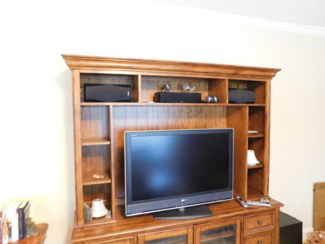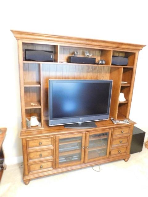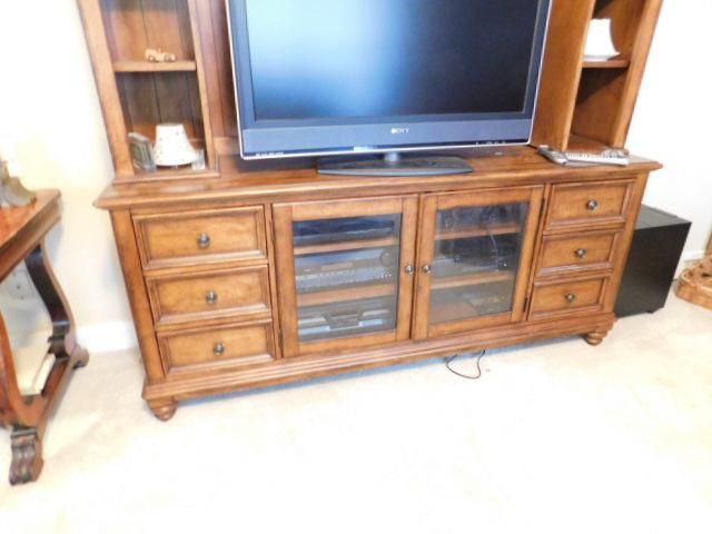 Solid Two Piece Entertainment Hutch by Haverty 72"x 20"x 82" (No Contents) may have some scratches or wear to the finish. Two stairs down to driveway.