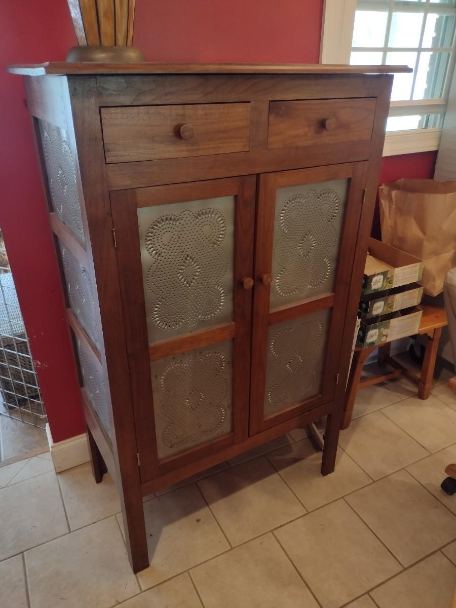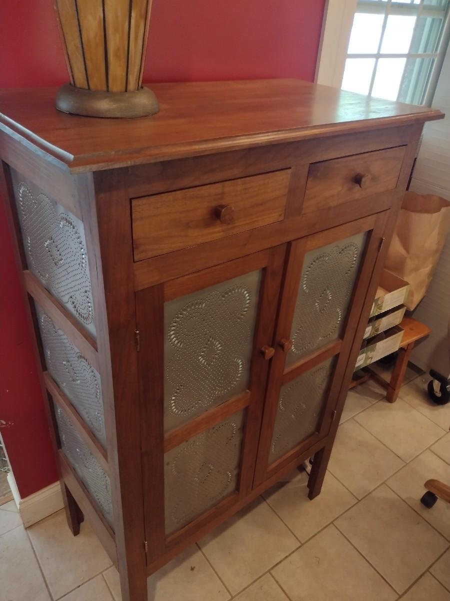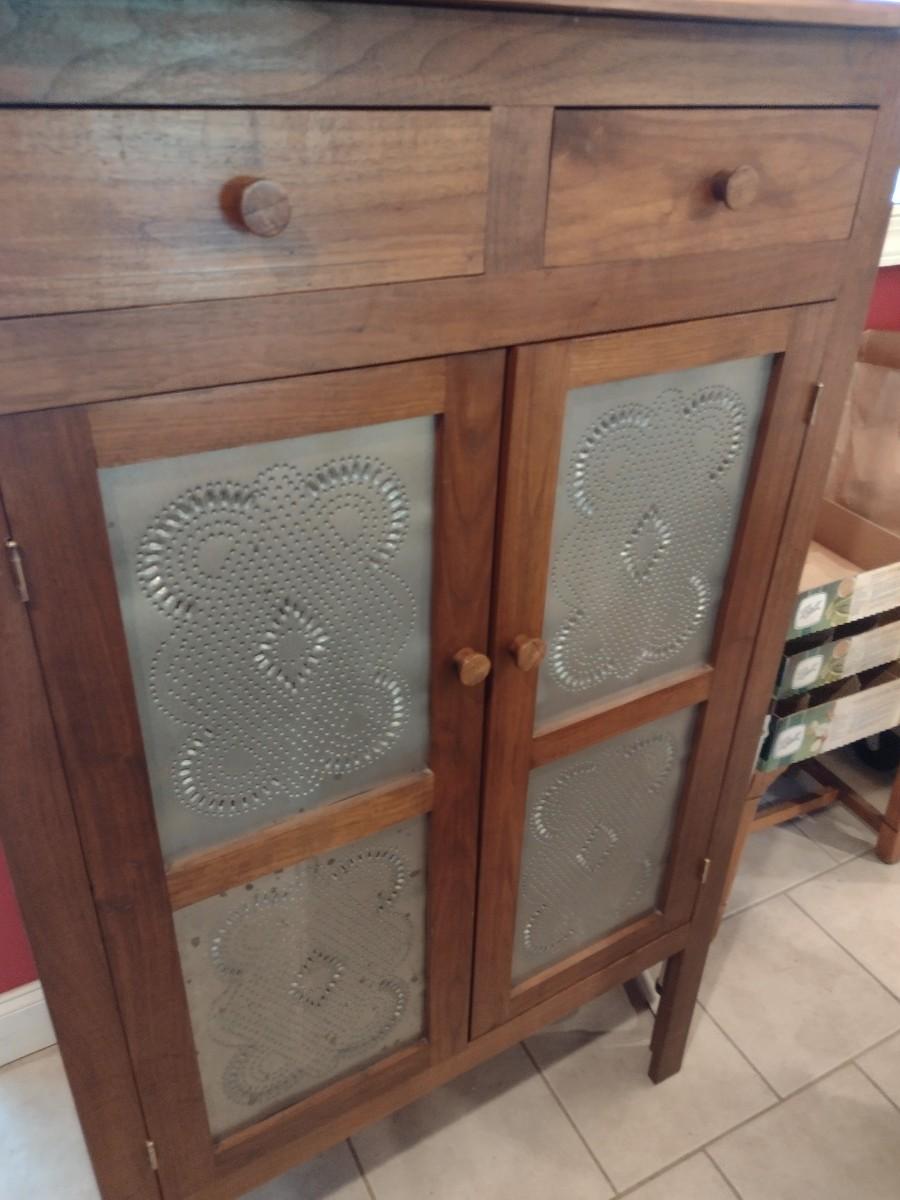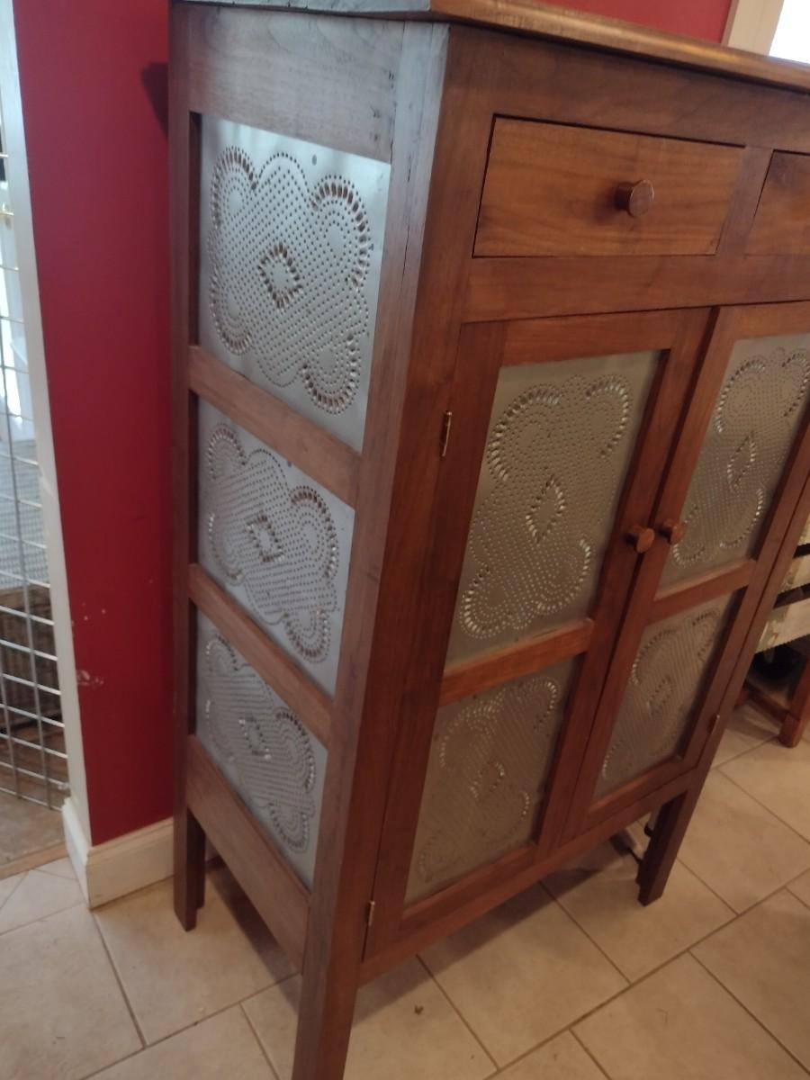 Solid Walnut Double Door Pie Safe with Punched Tin Accent Panels
