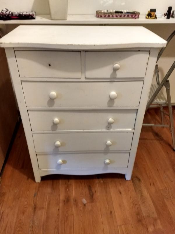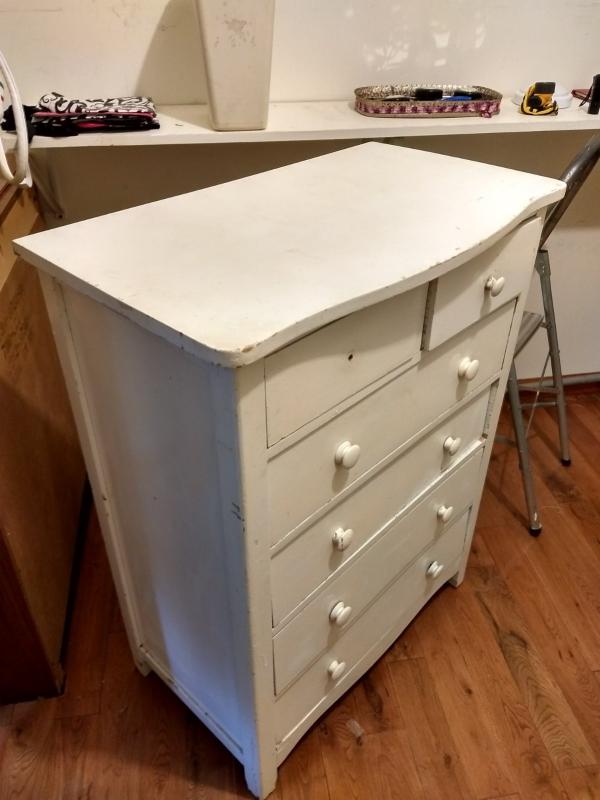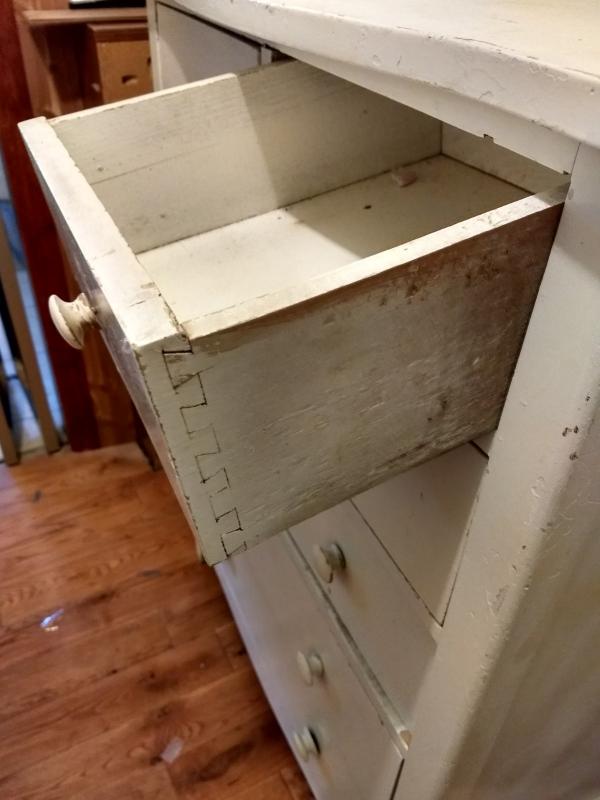 Solid Wood 2 over 4 Farm House Dresser has missing pull and wear to finish