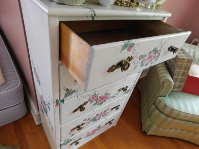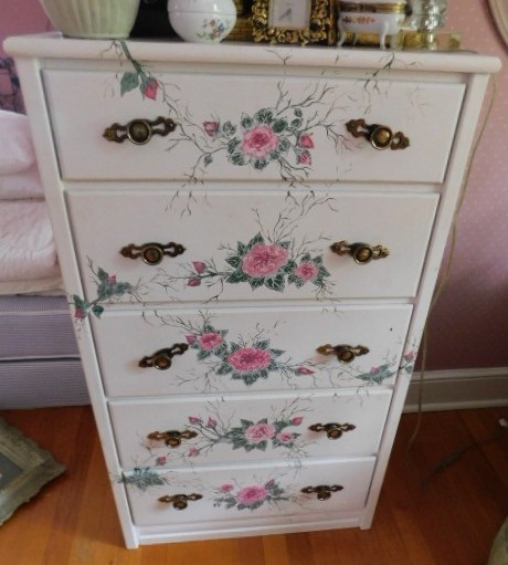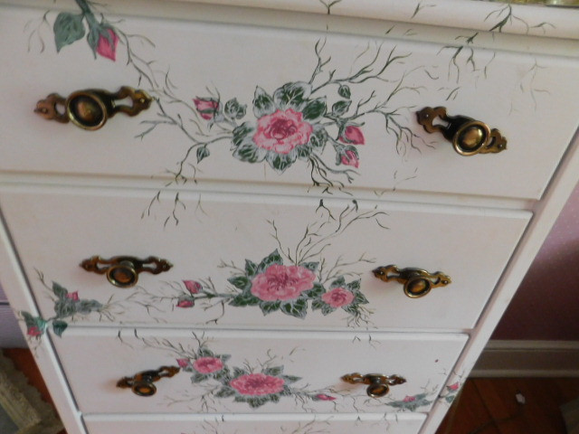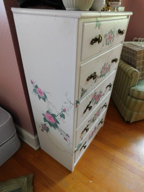 Solid Wood 5 Drawer Dresser Hand Painted and Decorated
