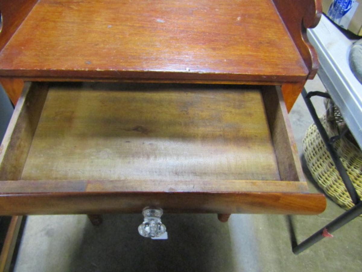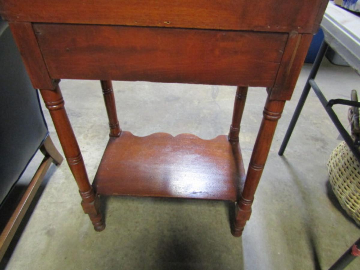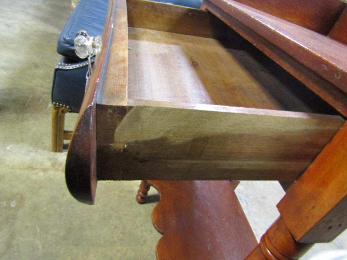 Solid Wood Accent Table with Scrolled Edging, Drawer, and Stretcher Shelf