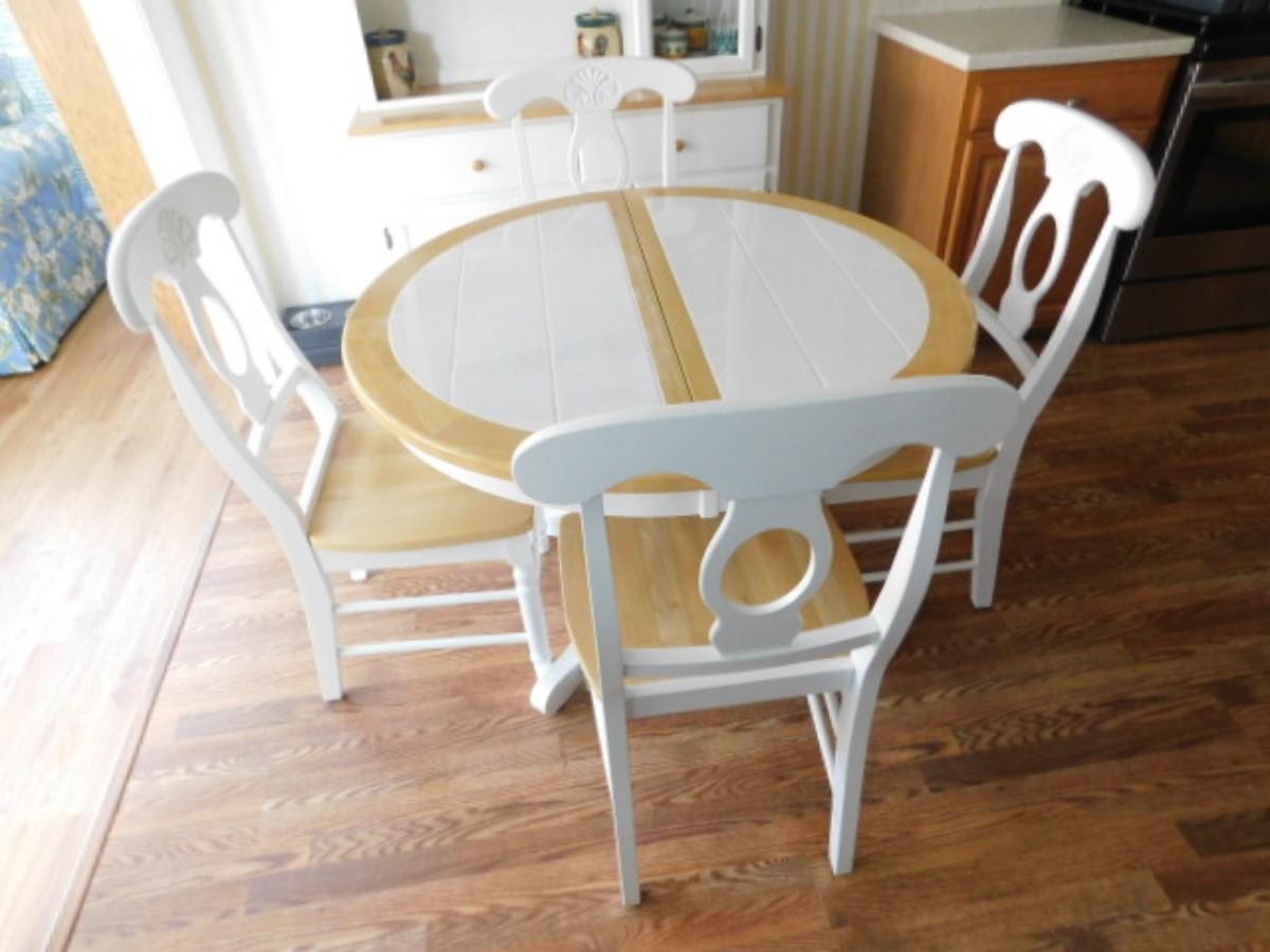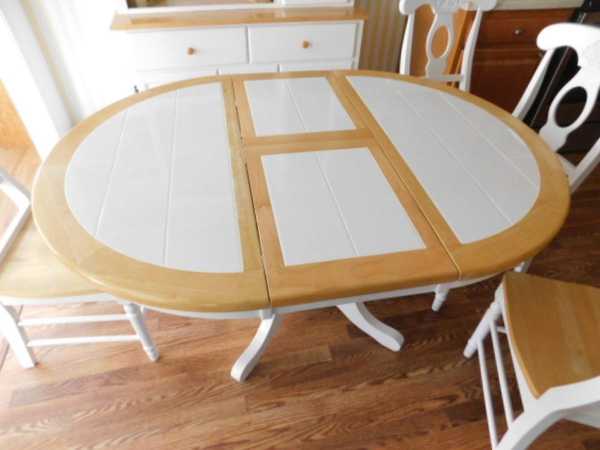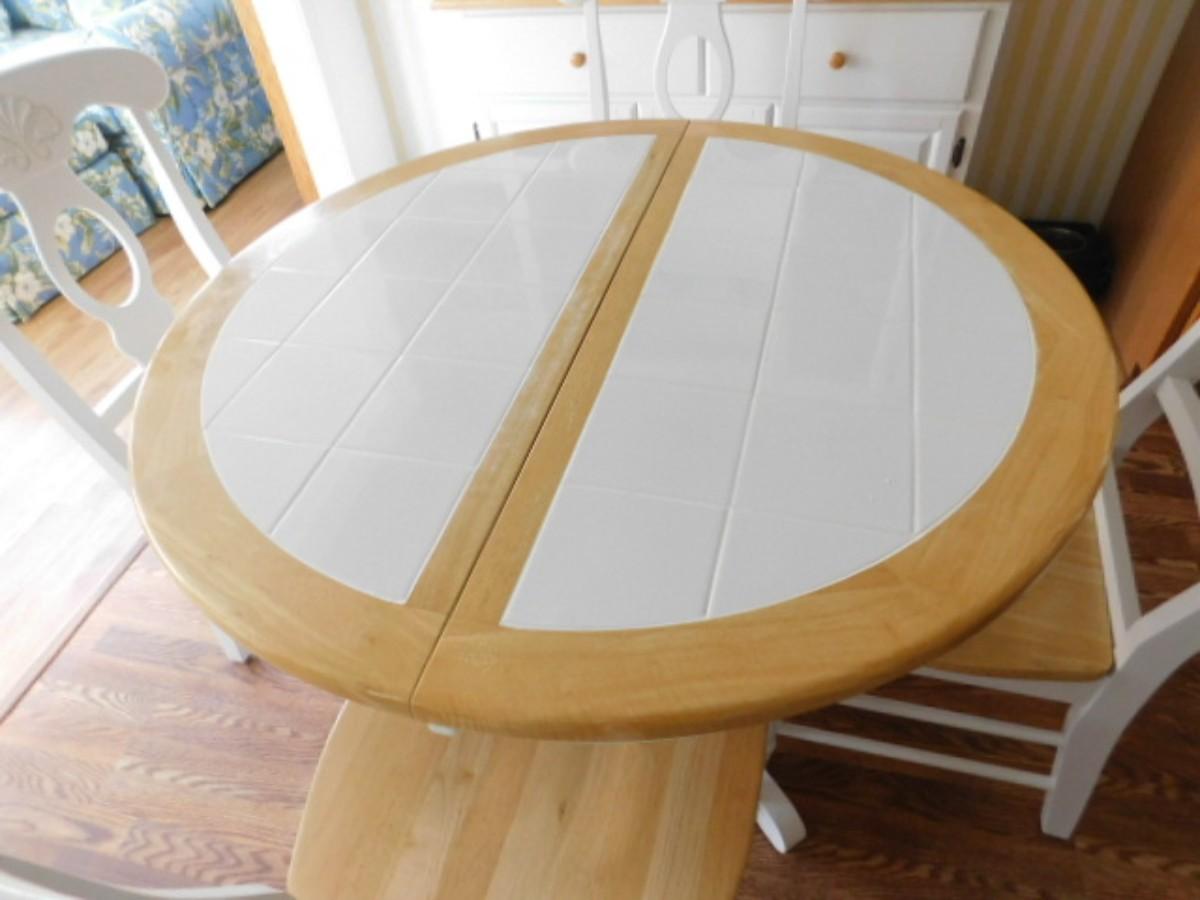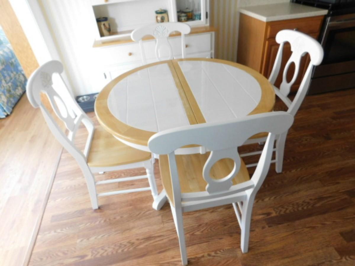 Solid Wood and Tile Top Table with Four Chairs and Built-in Leaf by Coaster