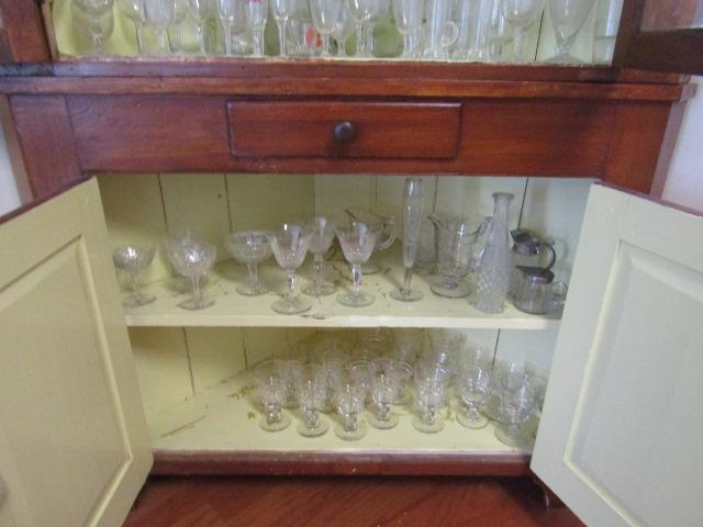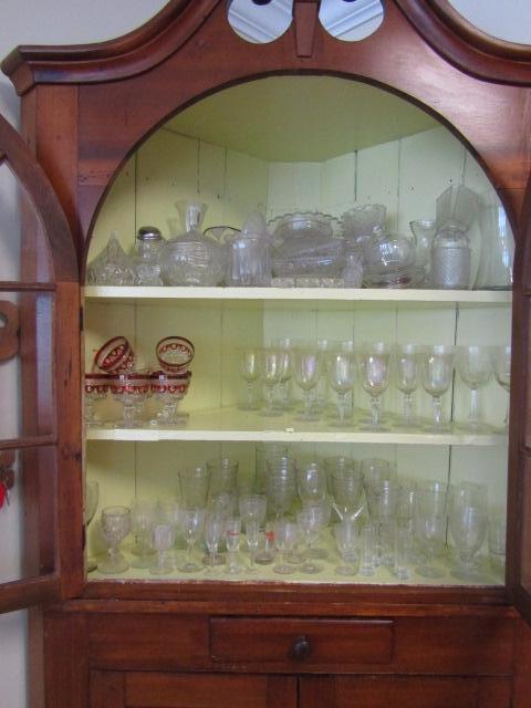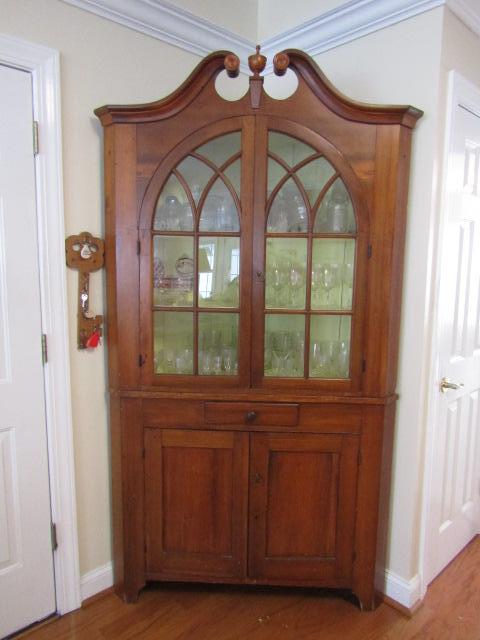 Solid Wood, Antique Corner Cabinet with Goose Neck Pediments (No Contents)- 45" Across, 21 1/4" Deep, 84 3/4" Tall