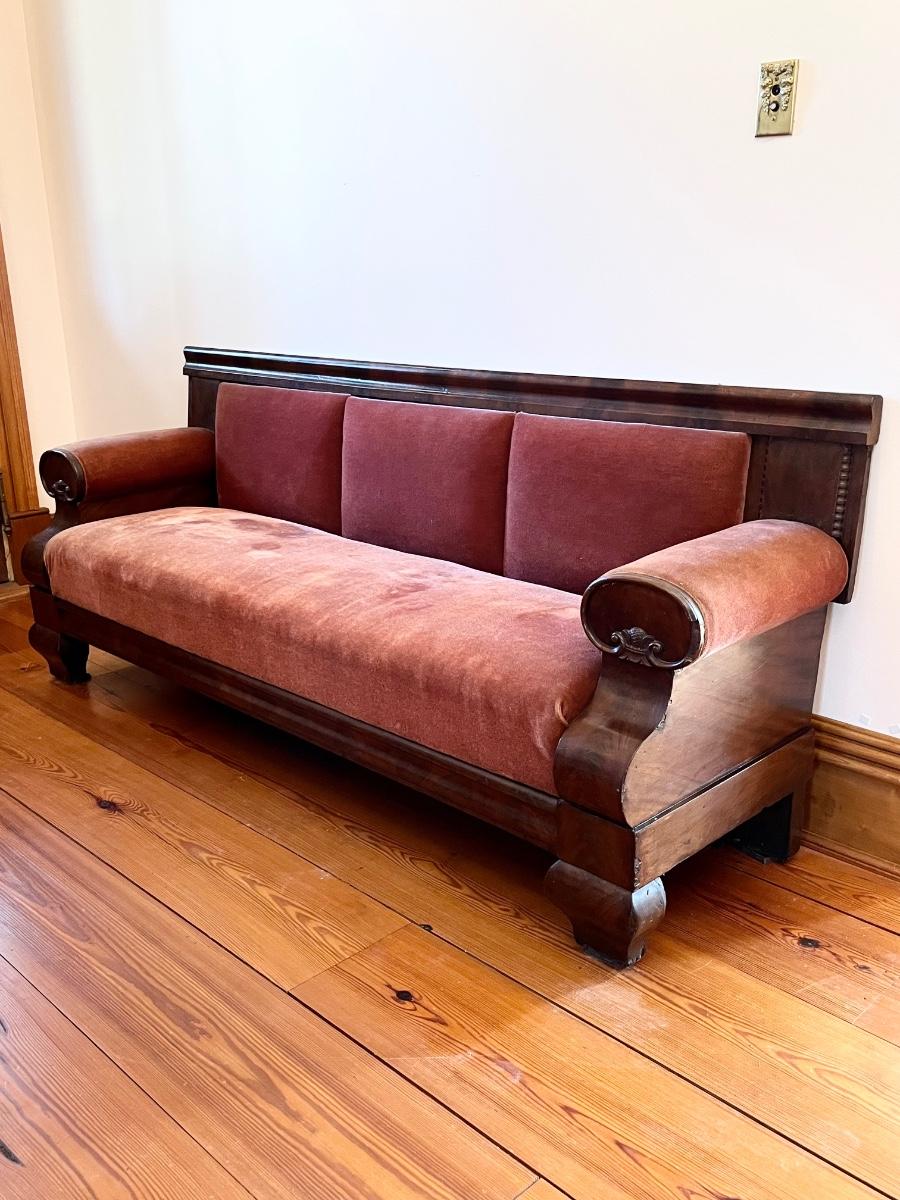 Solid Mahogany Antique Sofa ~ With Apricot Velvet Upholstery