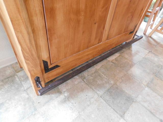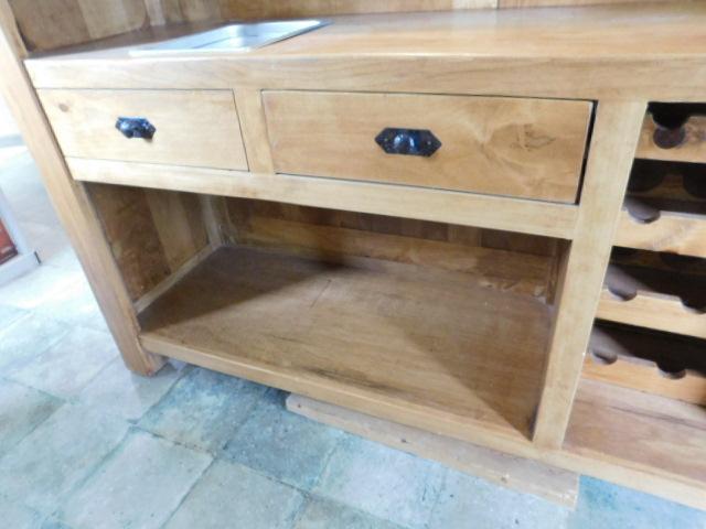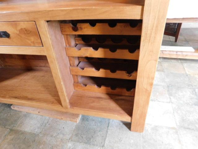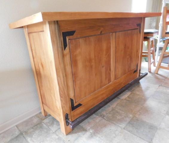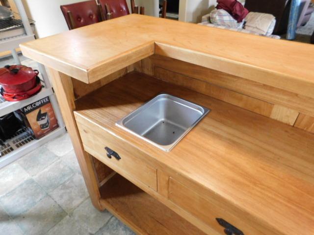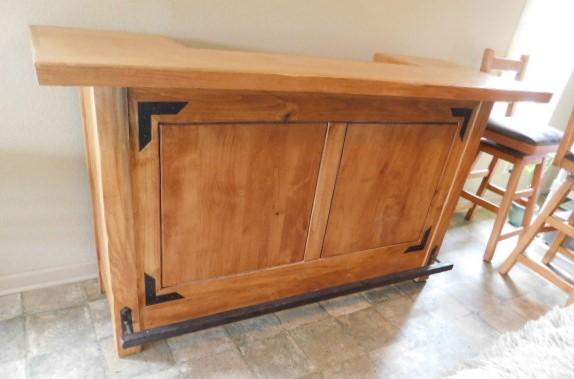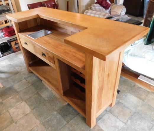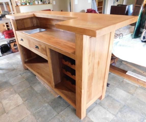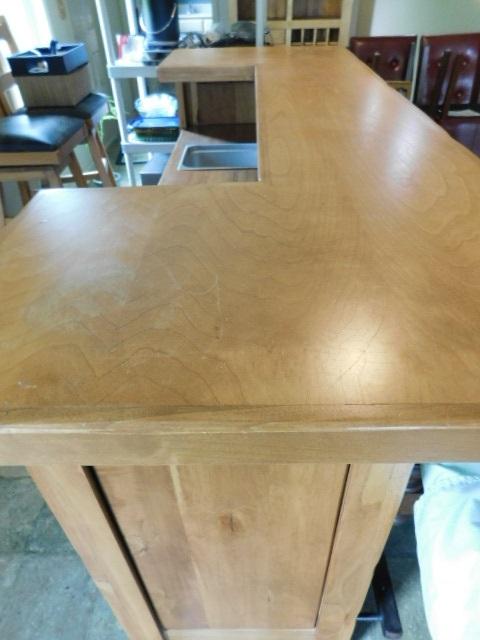 Solid Wood Bar with Sink and Foot Rail 76"x27"x43" has small water mark on surface. Lower Level. top removes. small grassy incline to reach drive. Must bring assistance to remove and load