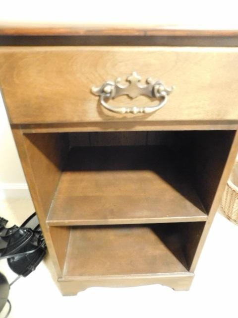Solid Wood Bedside Table with Single Drawer and Open Shelves Vermont Made