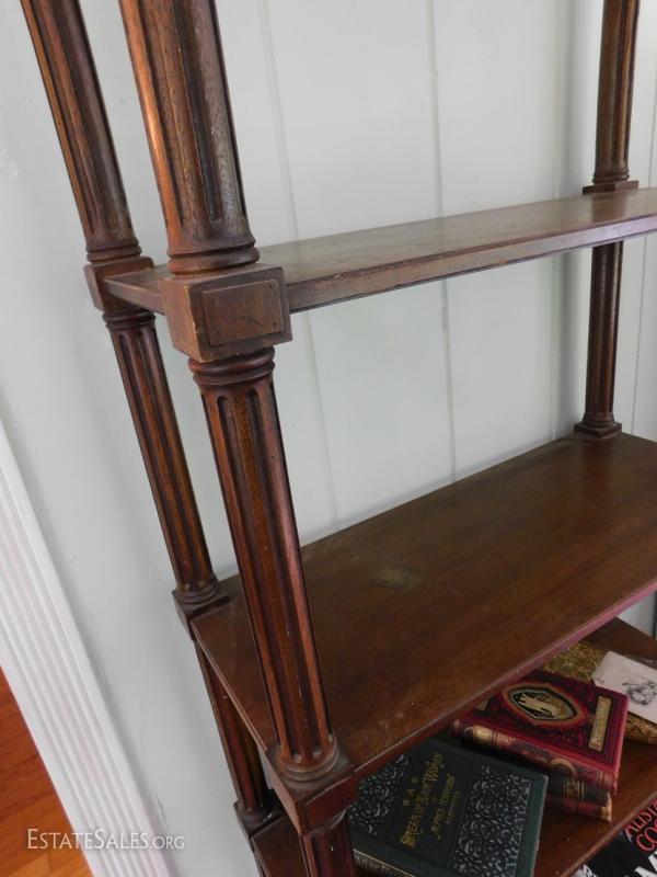 6'-9" tall solid wood book shelf with fluted posts and solid sturdy shelves. Very nice and functional piece.