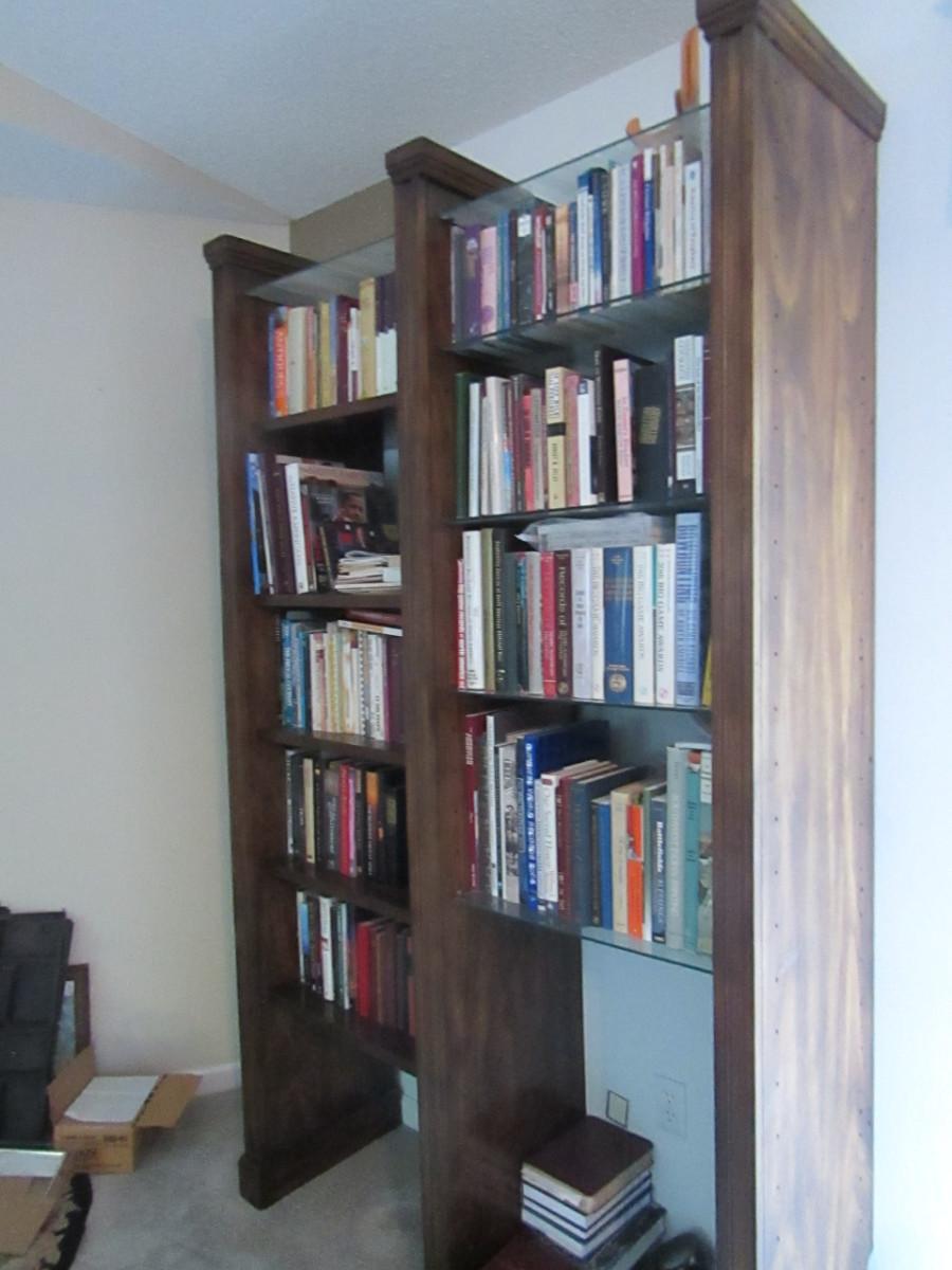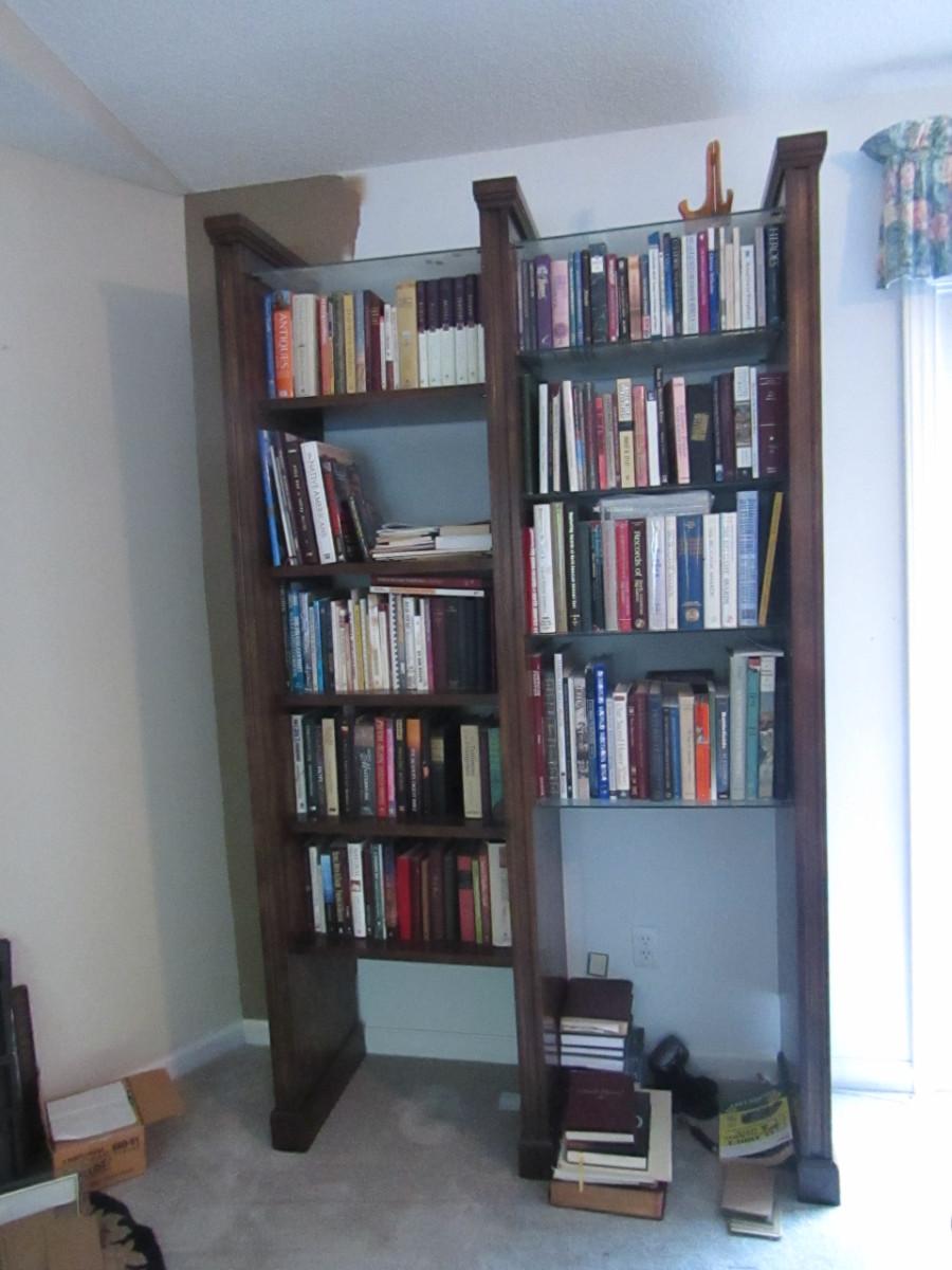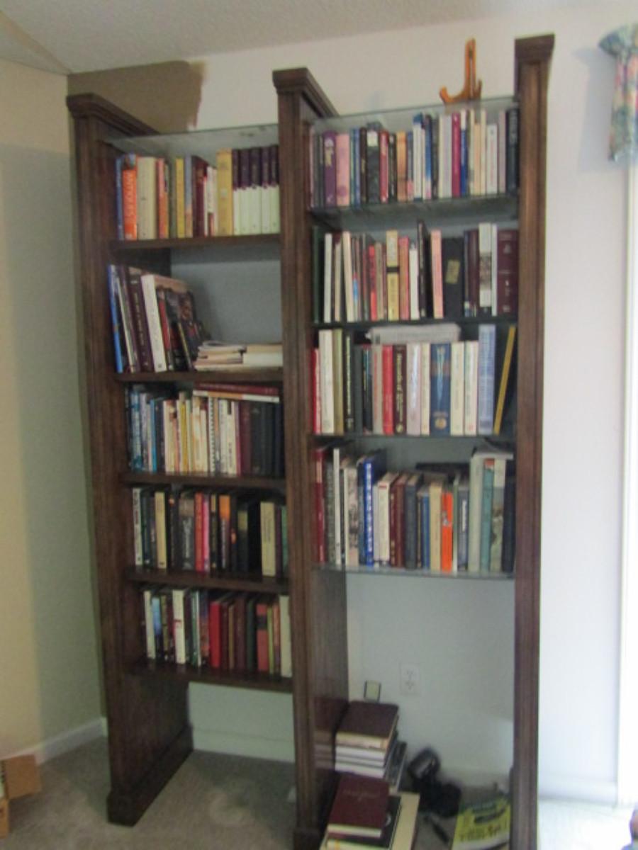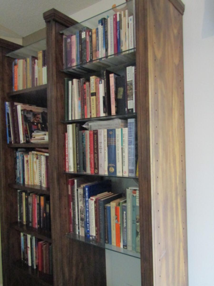 Solid Wood Book Shelves- No Contents. Some shelves are glass.