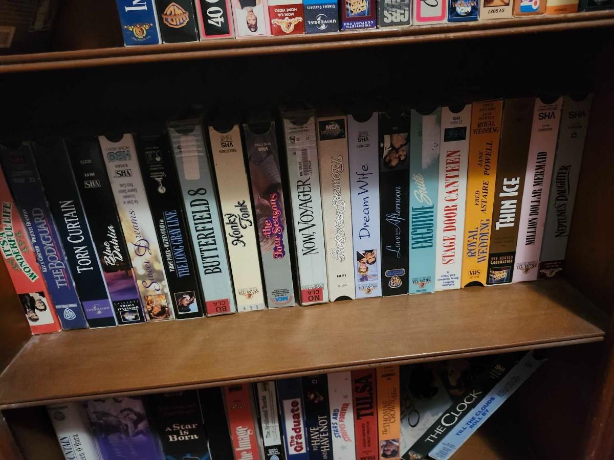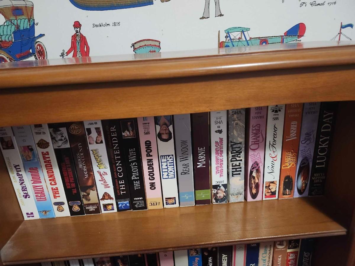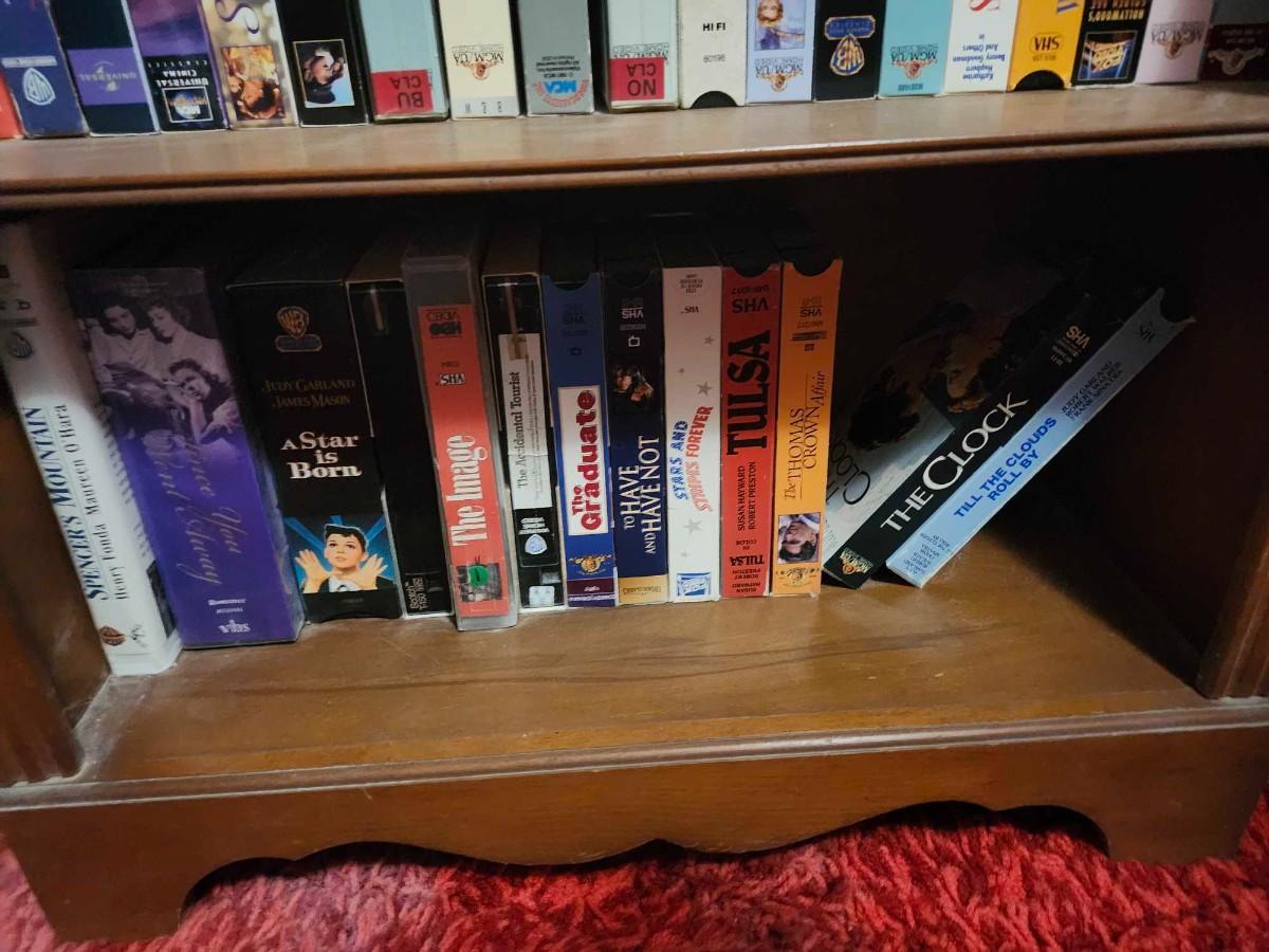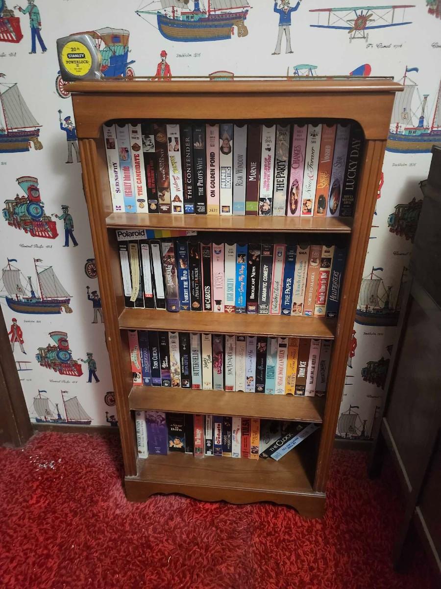 Solid Wood Bookcase and VHS Tapes
