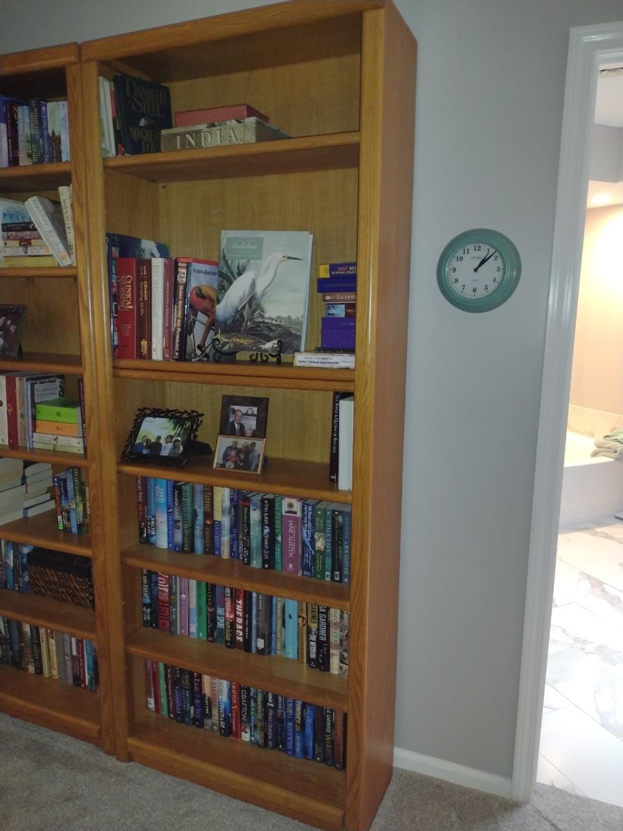 Solid Wood Bookshelf (Right Hand Side). Measures approx 33" wide, 12" deep, 84" tall. No contents included.