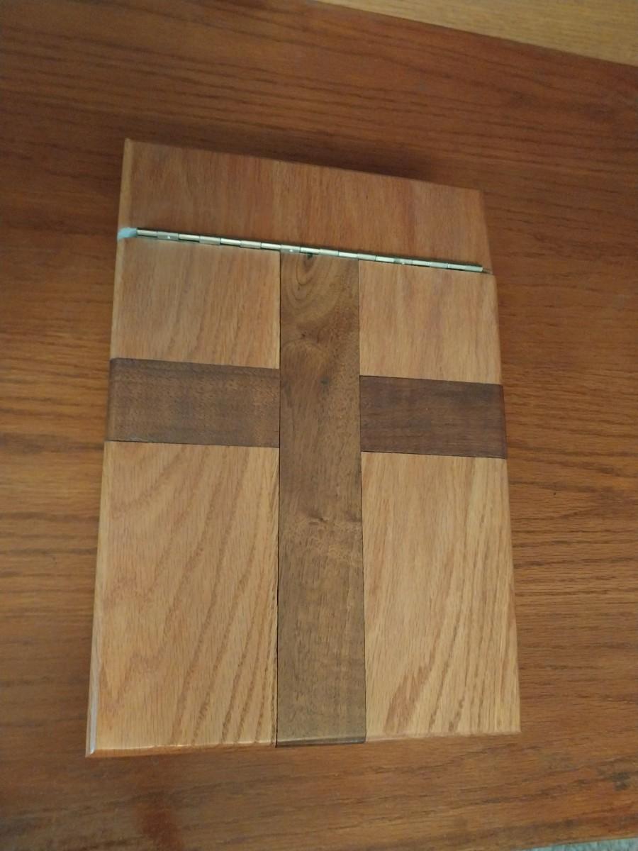 SOLID WOOD BOX WITH AN INLAY CROSS