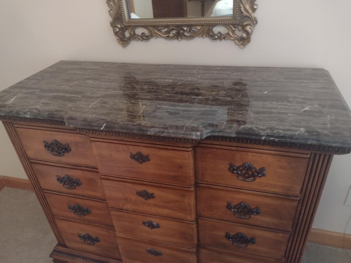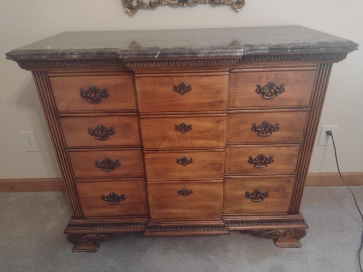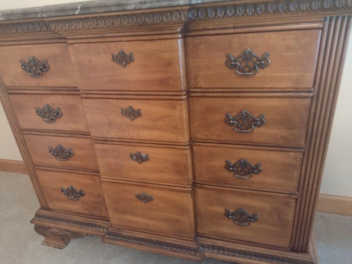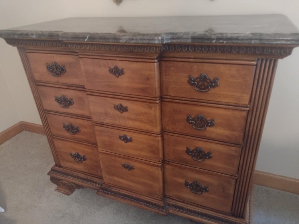 Solid Wood Breakfront Four Drawer Dresser with Marble Top
