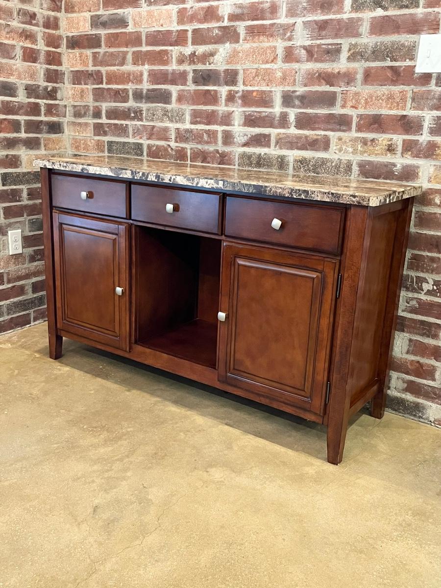 Solid Wood Buffet/Side Board Cabinet ~ With Marble Style Top