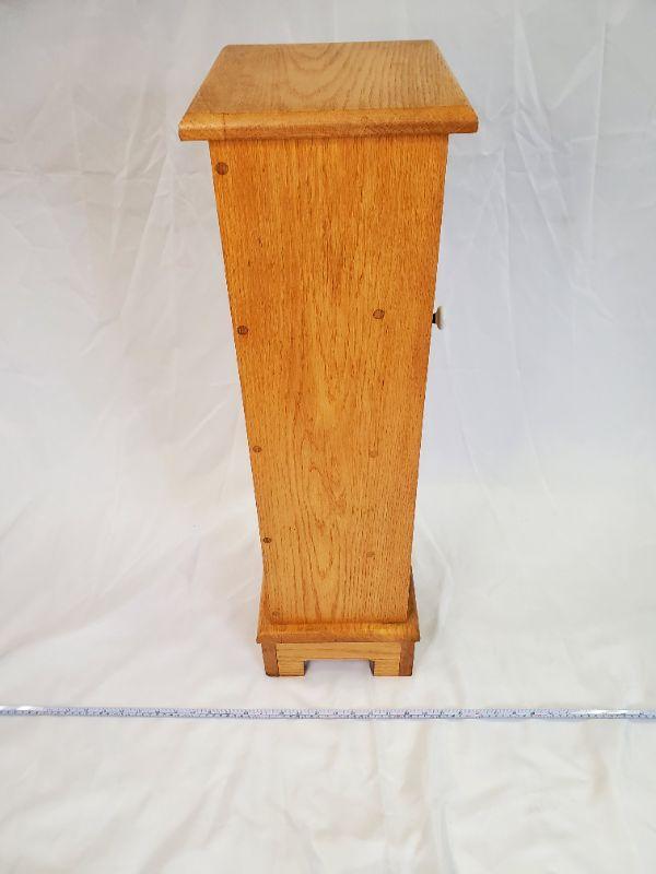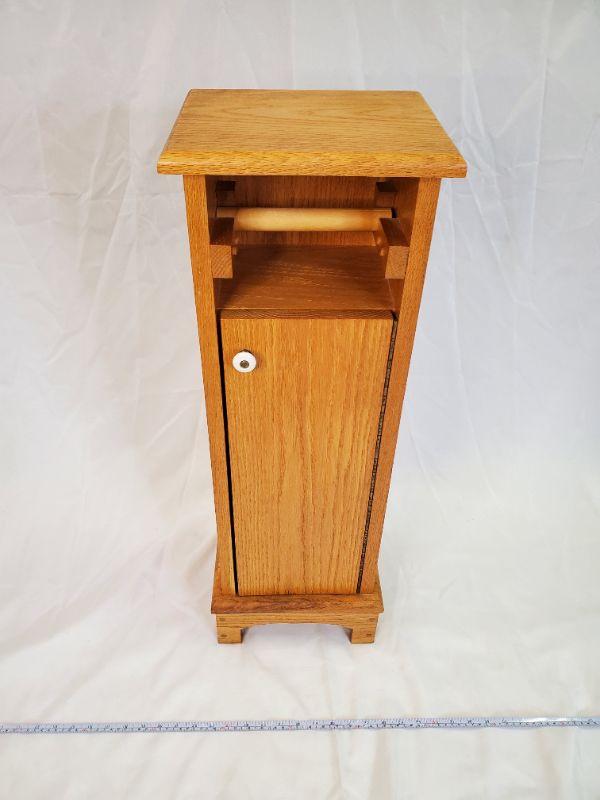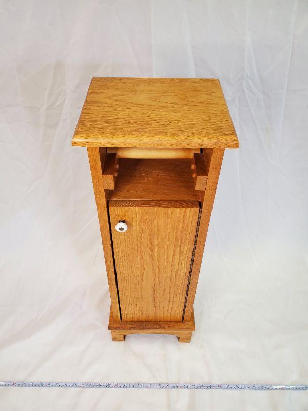 This cabinet is unique! Has a bar that would roll for paper...shelves inside door. Very solid, good condition!