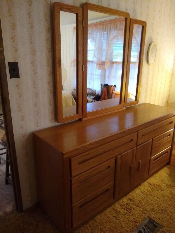 Solid Wood Chest of Drawers with Mirror by Broyhill (Approx 66" x 18" x 30")