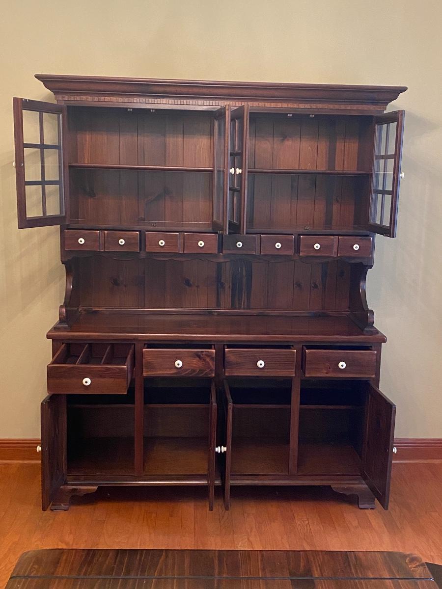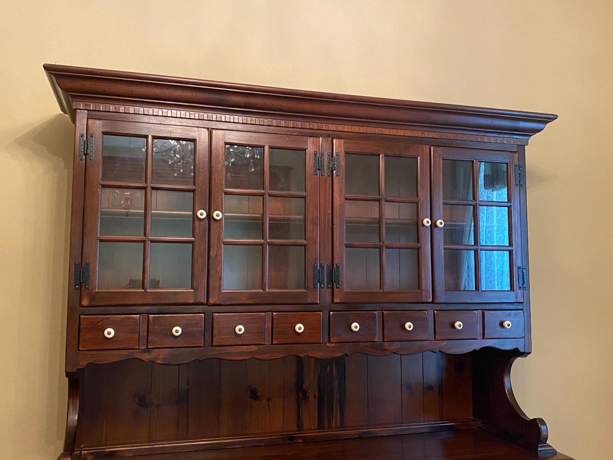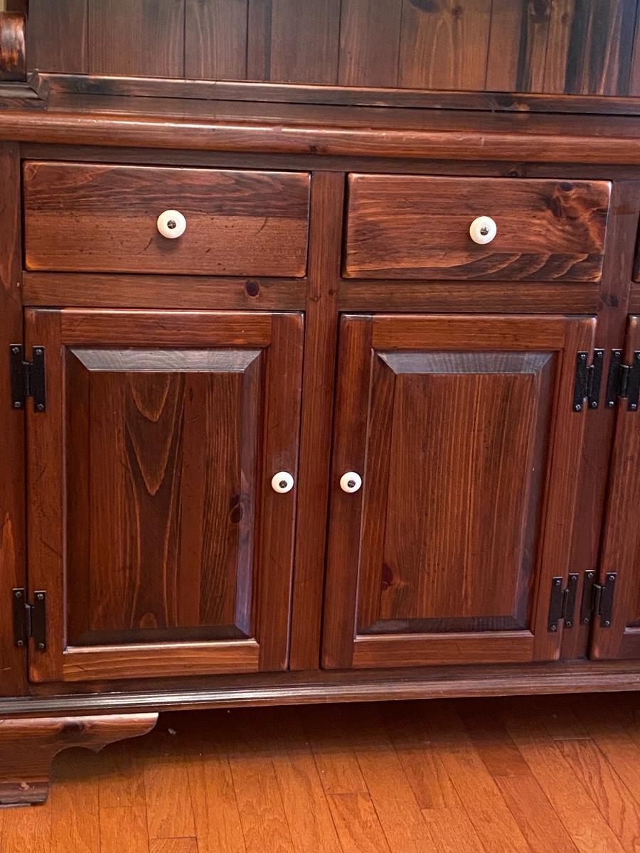 Ethan Allen Solid Wood China Cabinet with White Porcelain Knobs - So Rustic!