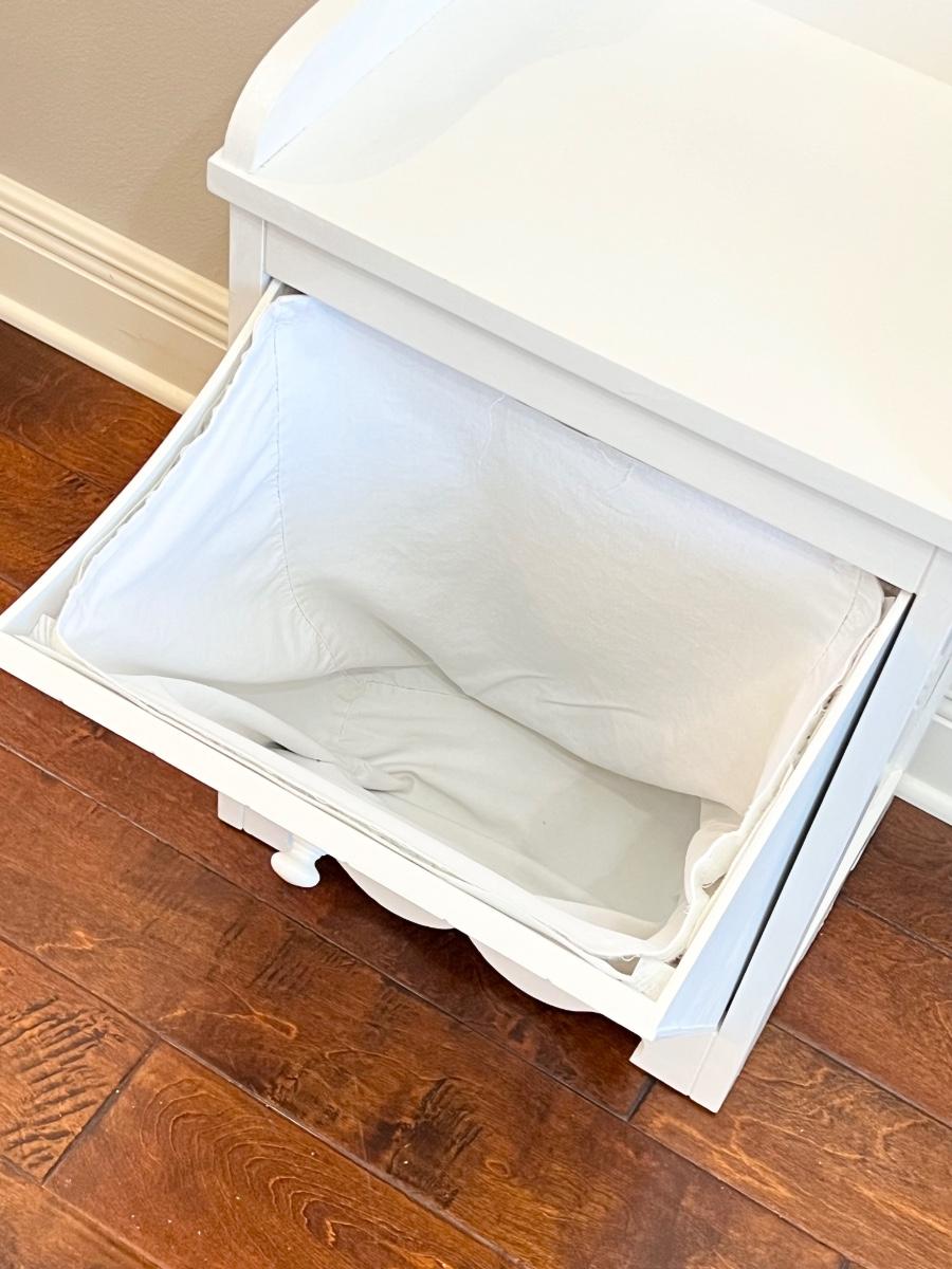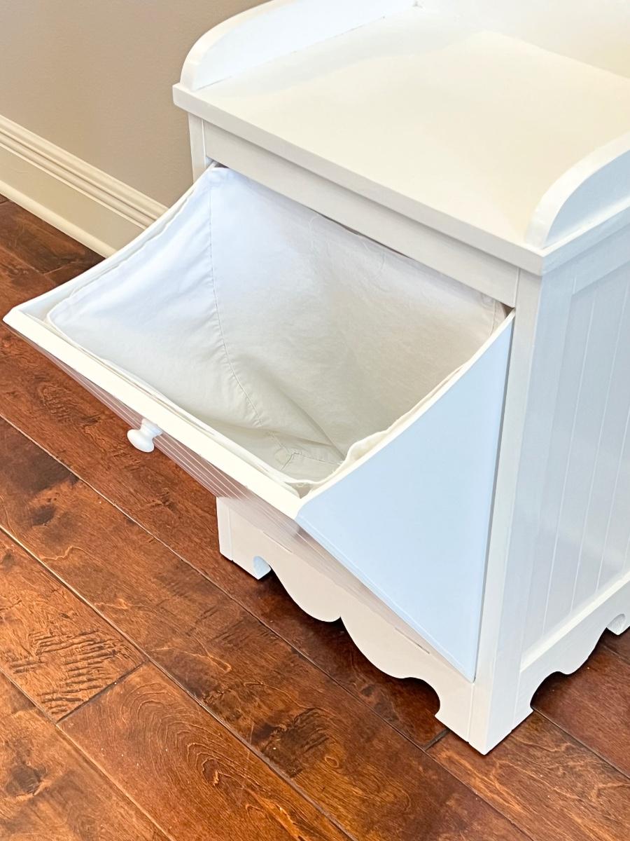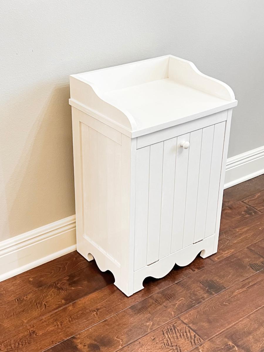 Has been painted white ~ Inside liner has Velcro for easy removal ~ 27” H x 17” W x 13” D