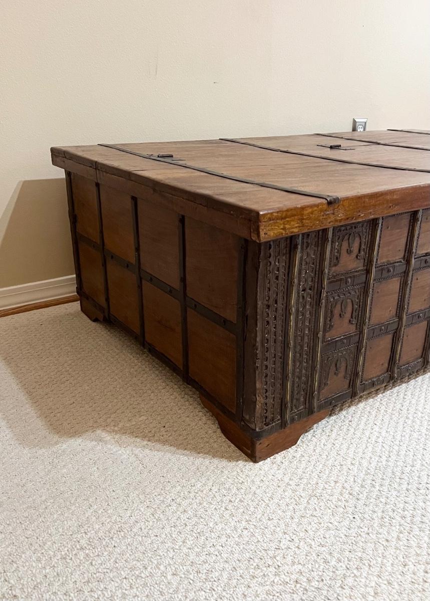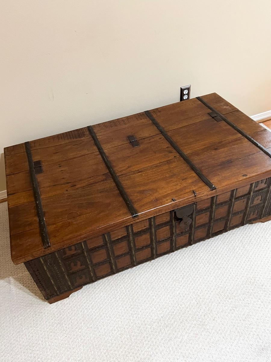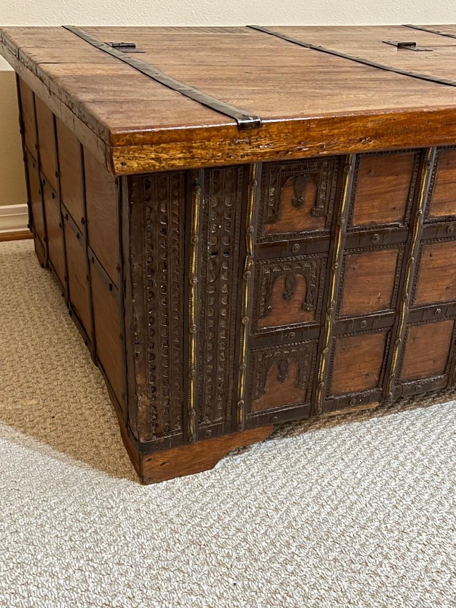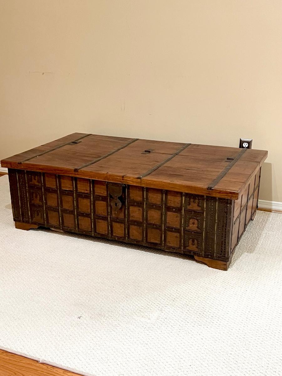 Made In India ~ Heavy Solid Wood & Metal Accented Storage Coffee Table